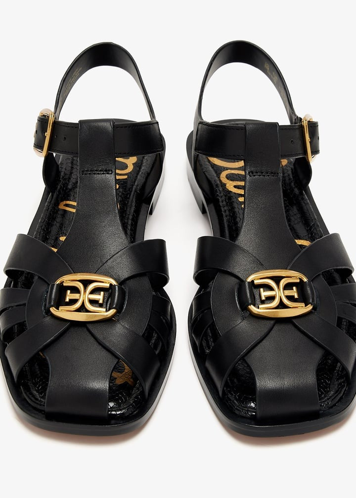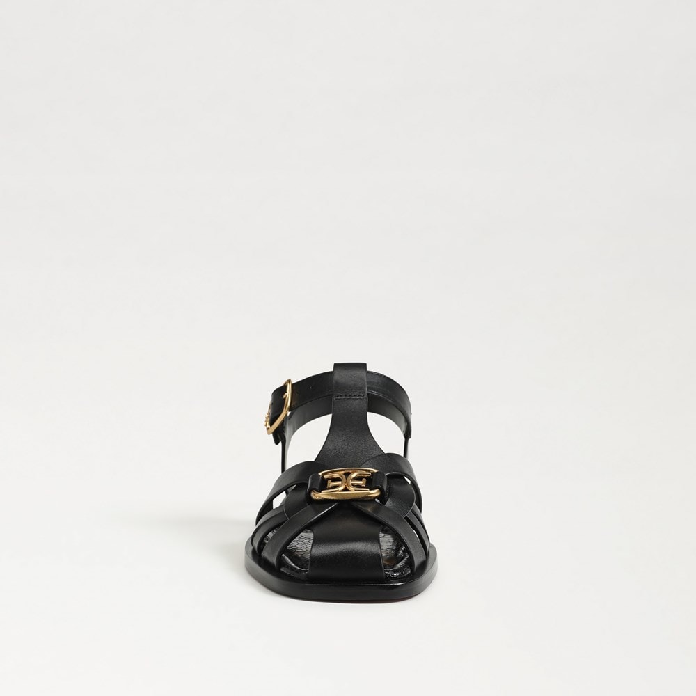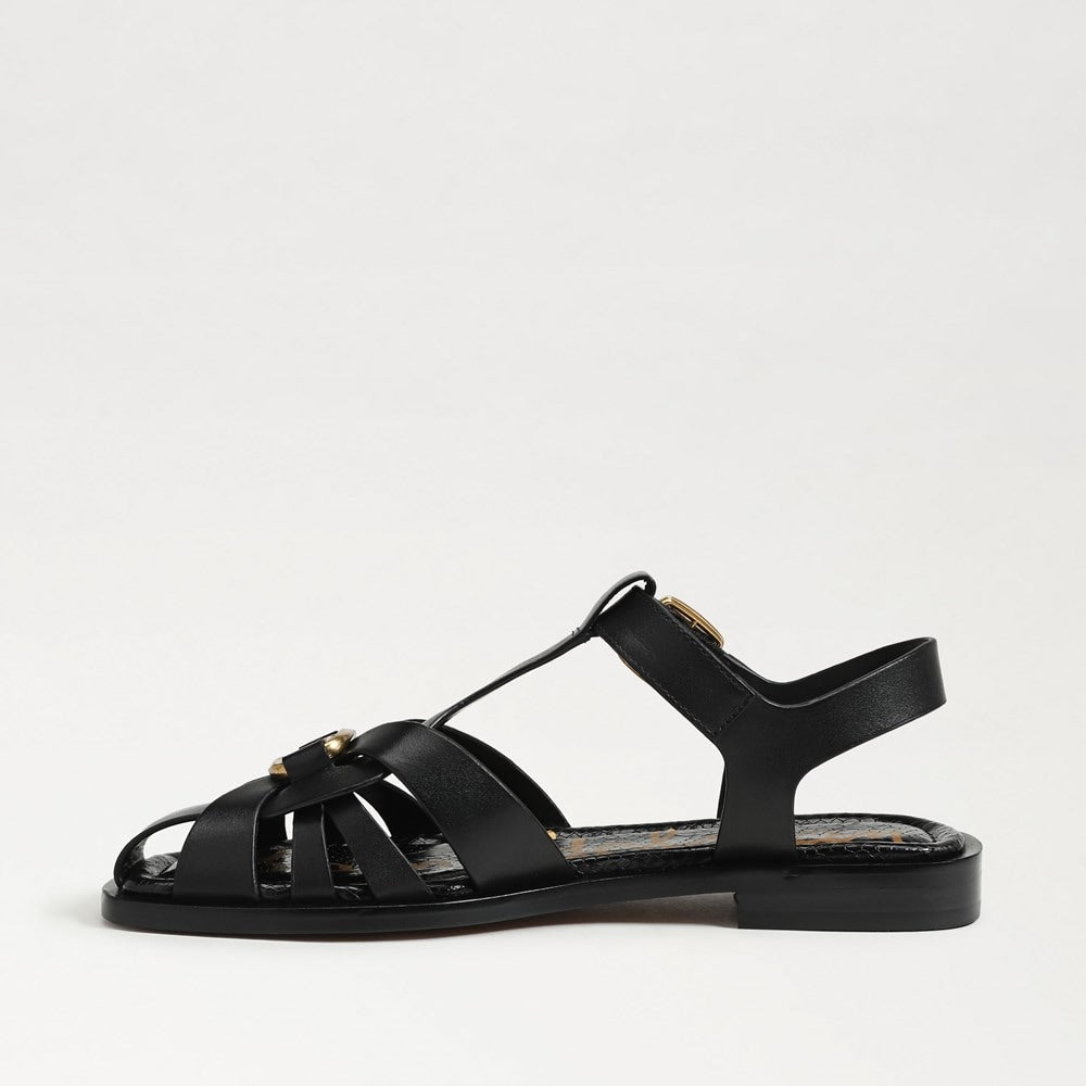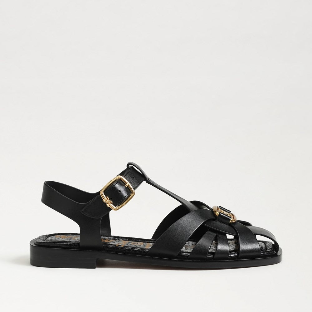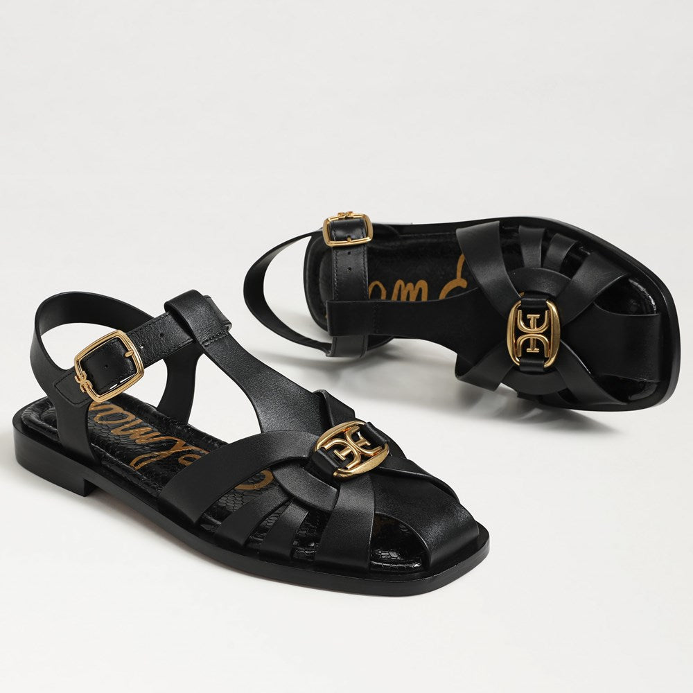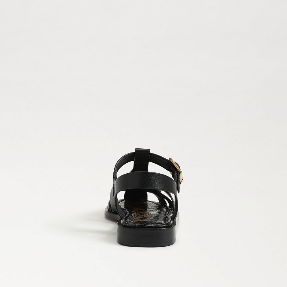 Sam Edelman Destin Black Leather Open Toe Strappy Buckle Detail Sandals