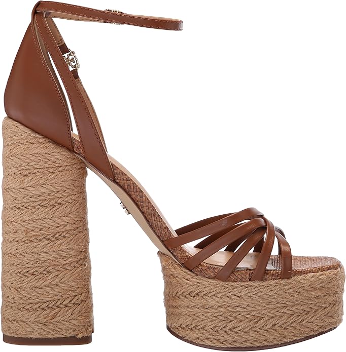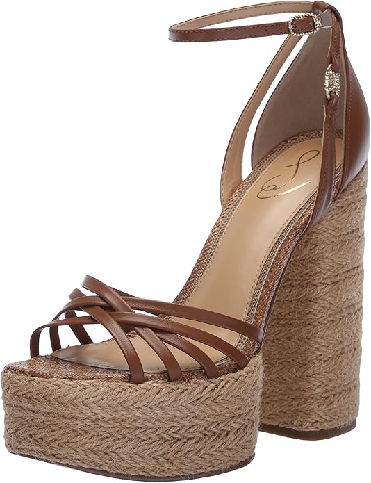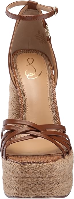 Sam Edelman Kade Rich Cognac Ankle Strap Open Toe Espadrille Block Heel Sandals