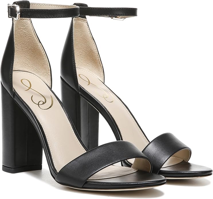 Sam Edelman Yaro Black Leather Ankle Strap Open Toe Block Heeled Dress Sandals