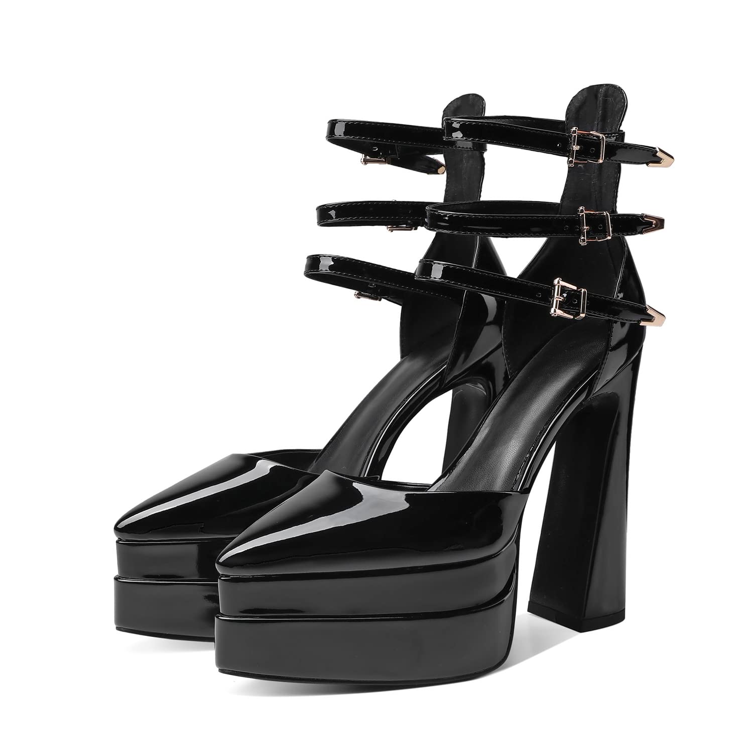 - High heels upper with Patent leather, ultra-soft and comfortable leather lining, cushioned footbed, slip-resistant outsole.