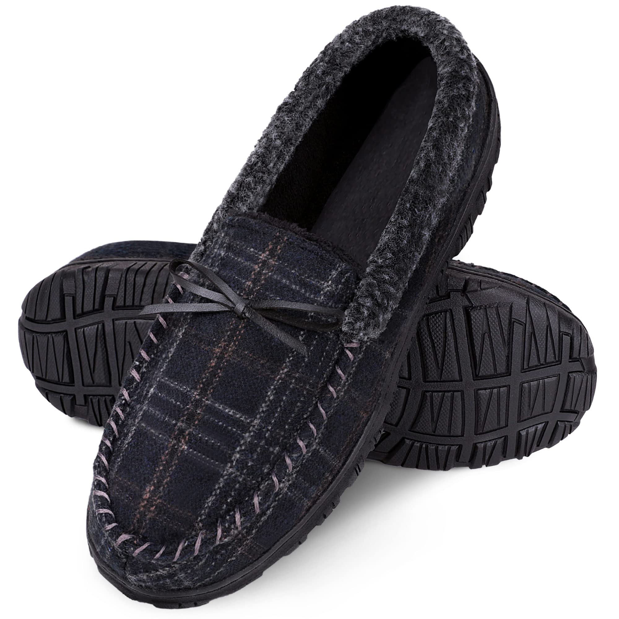 - Classic Design: Plaid Moccasin Slipper for men and teens. Classic and casual, perfect for indoor or outdoor occasions, available in men’s size 8 to 14
