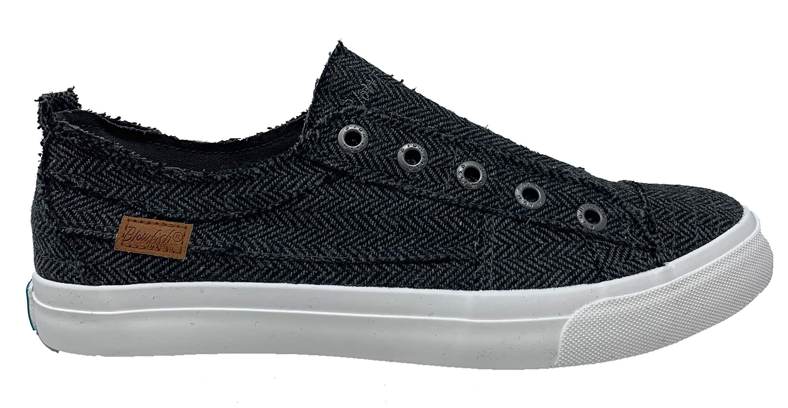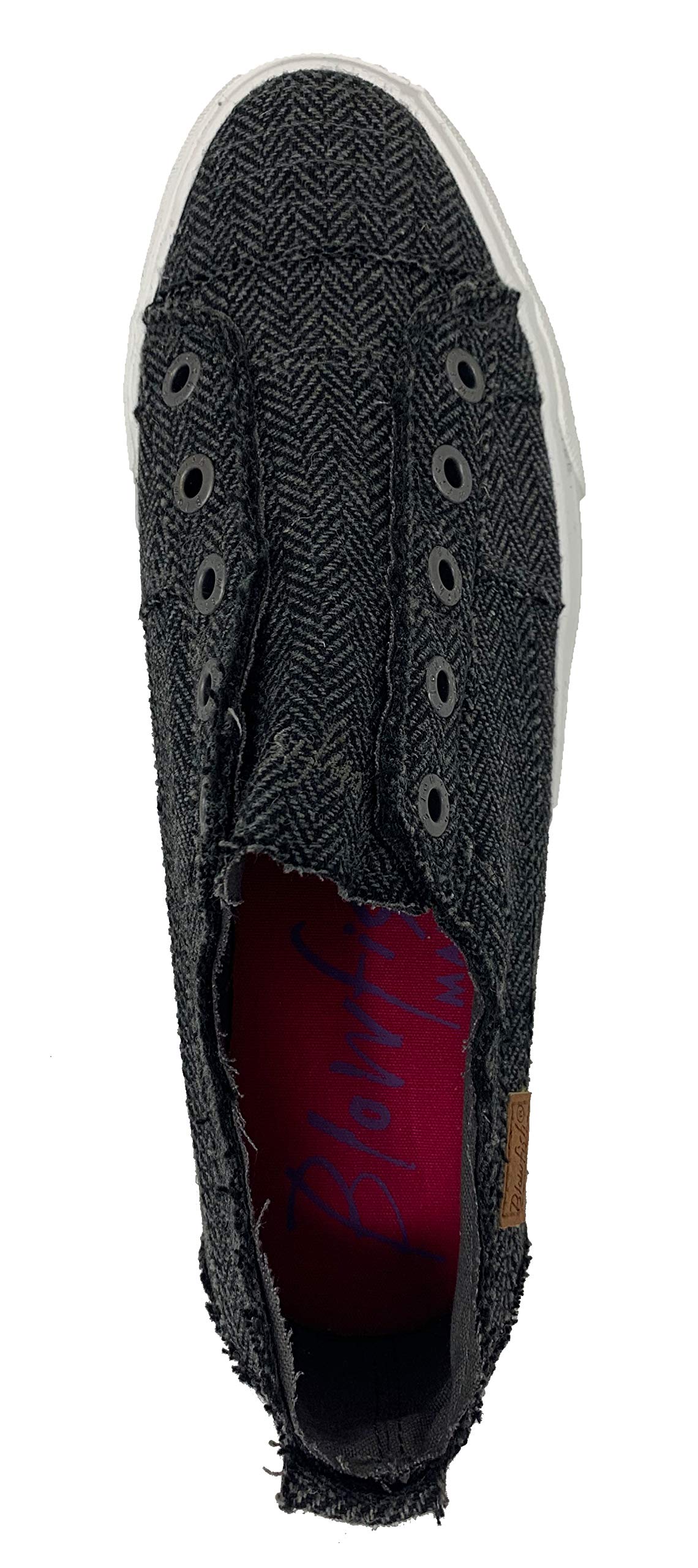 Blowfish Malibu Play Charcoal Herringbone Fashion Slip On Rounded Toe Sneakers