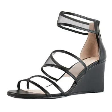 - Sleek and sophisticated wedge sandals featuring a convenient back zipper for easy wear