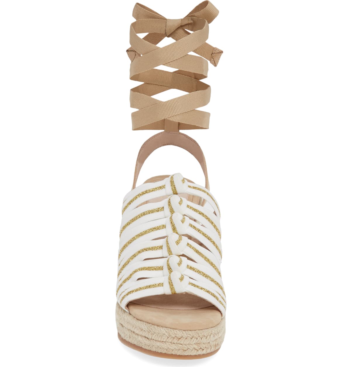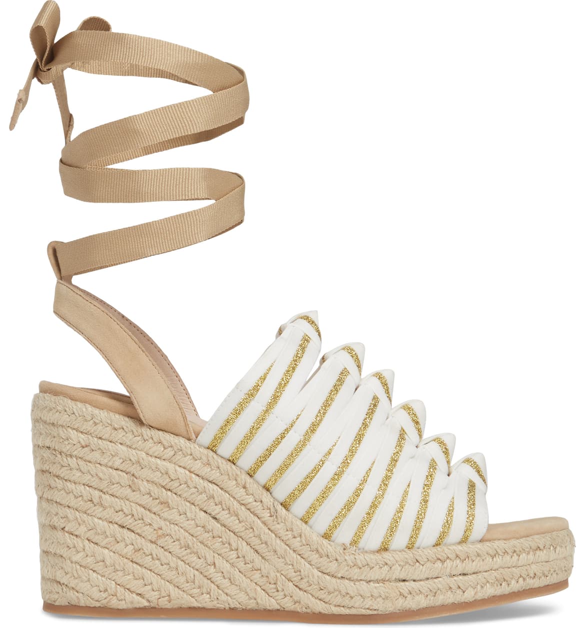 Cecelia New York Serena Espadrille Wedge WHITE GOLD TAN Platform Tie Up Sandals