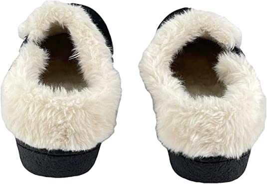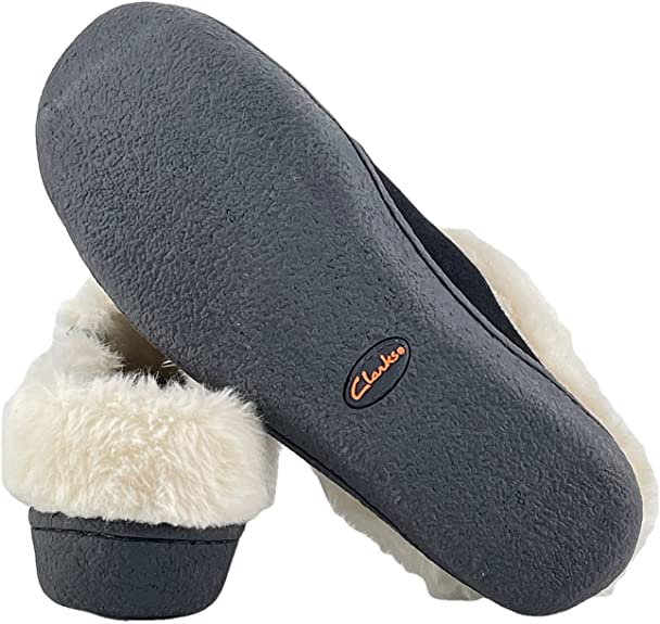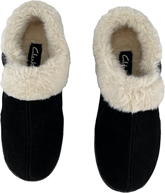 Clarks Indoor and Outdoor Black Slipper Warm Plush Wool Mule Slip-On Fur Lined Clogs