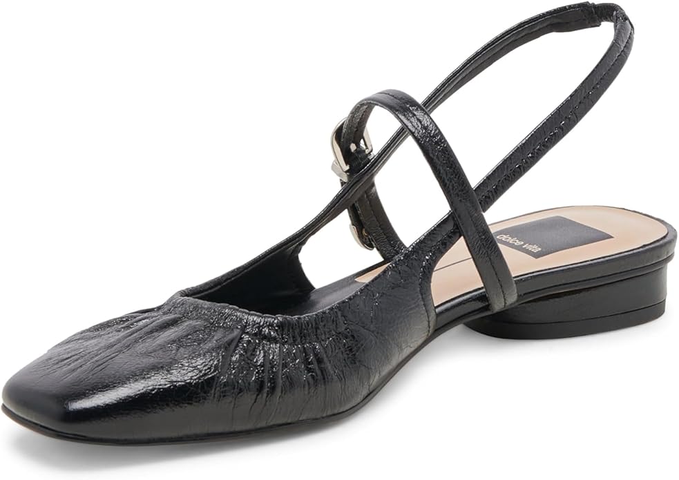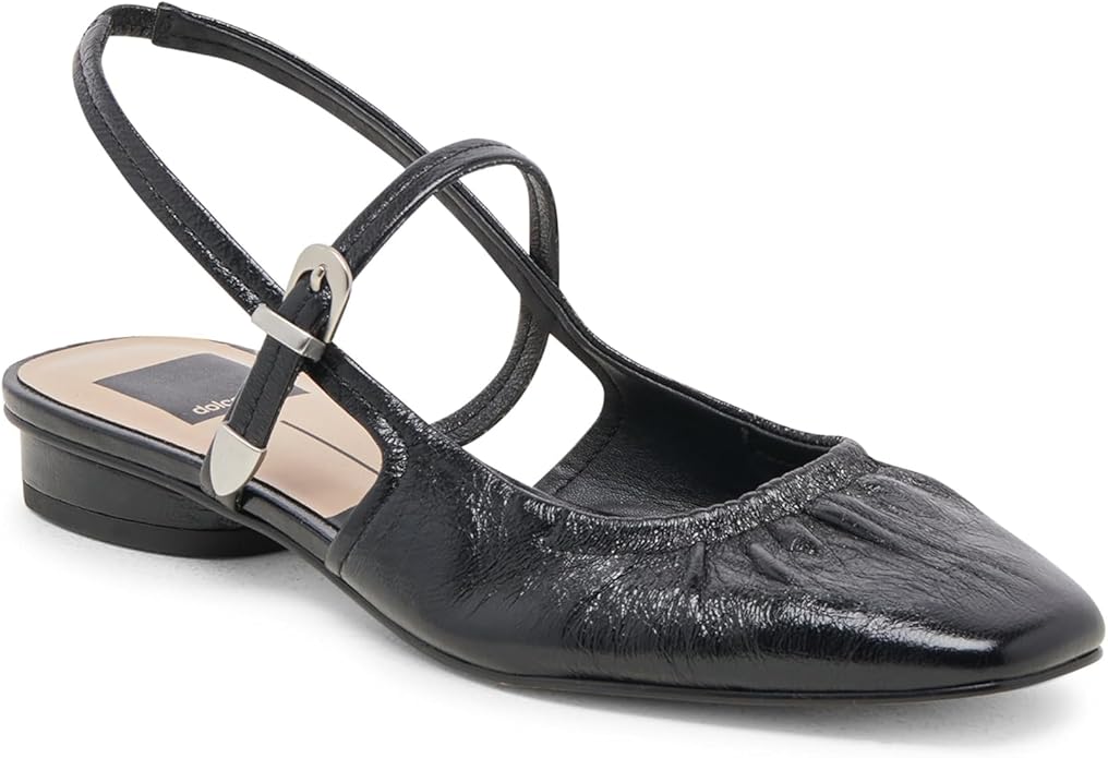 Dolce Vita Rianne Midnight Crinkle Patent Slingback Squared Toe Ballet Flats