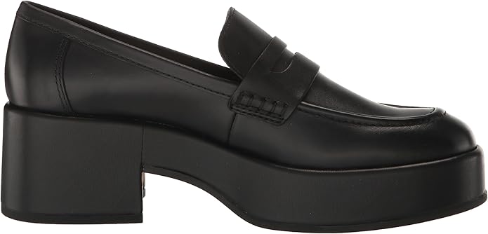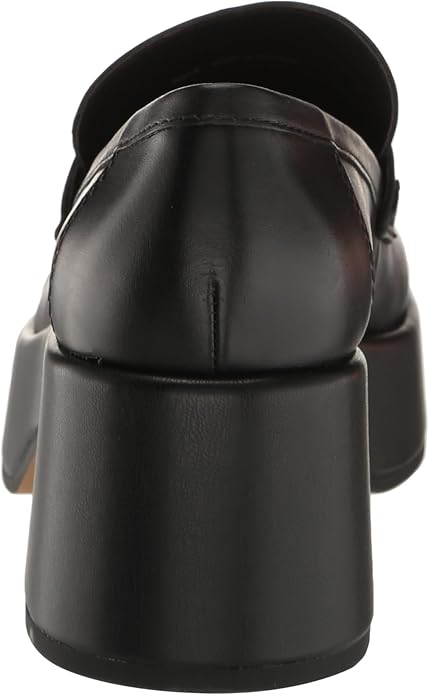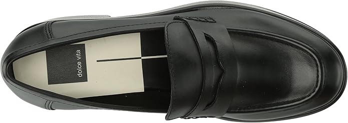 Dolce Vita Yanni Black Leather Slip On Round Toe Block Heeled Fashion Loafers