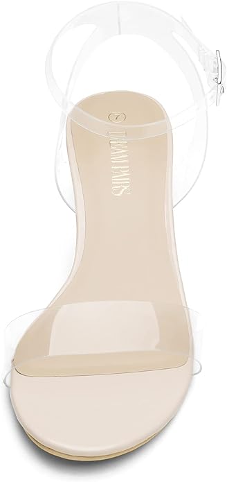 Dream Pairs Carnival Nude/Clear Open Toe Ankle Strap Low Block Heeled Sandals