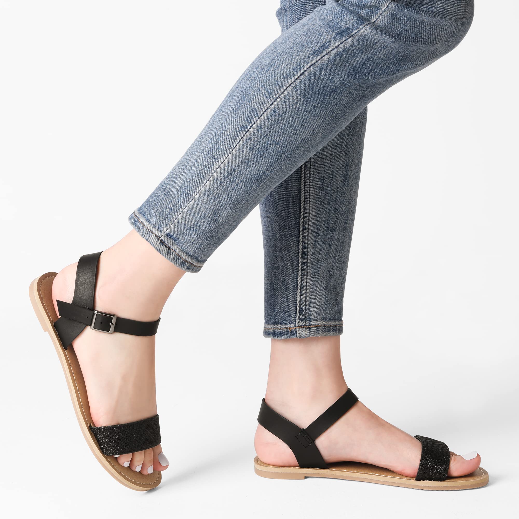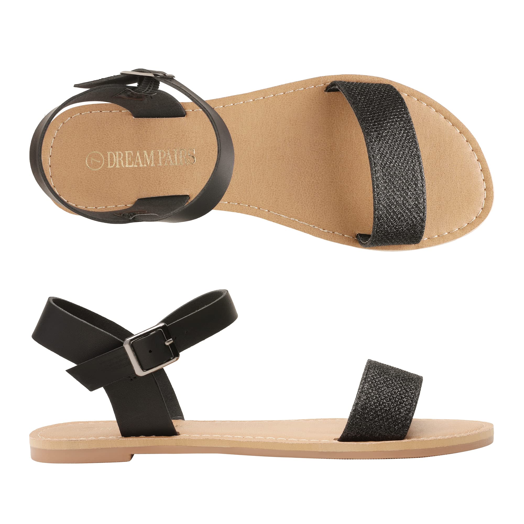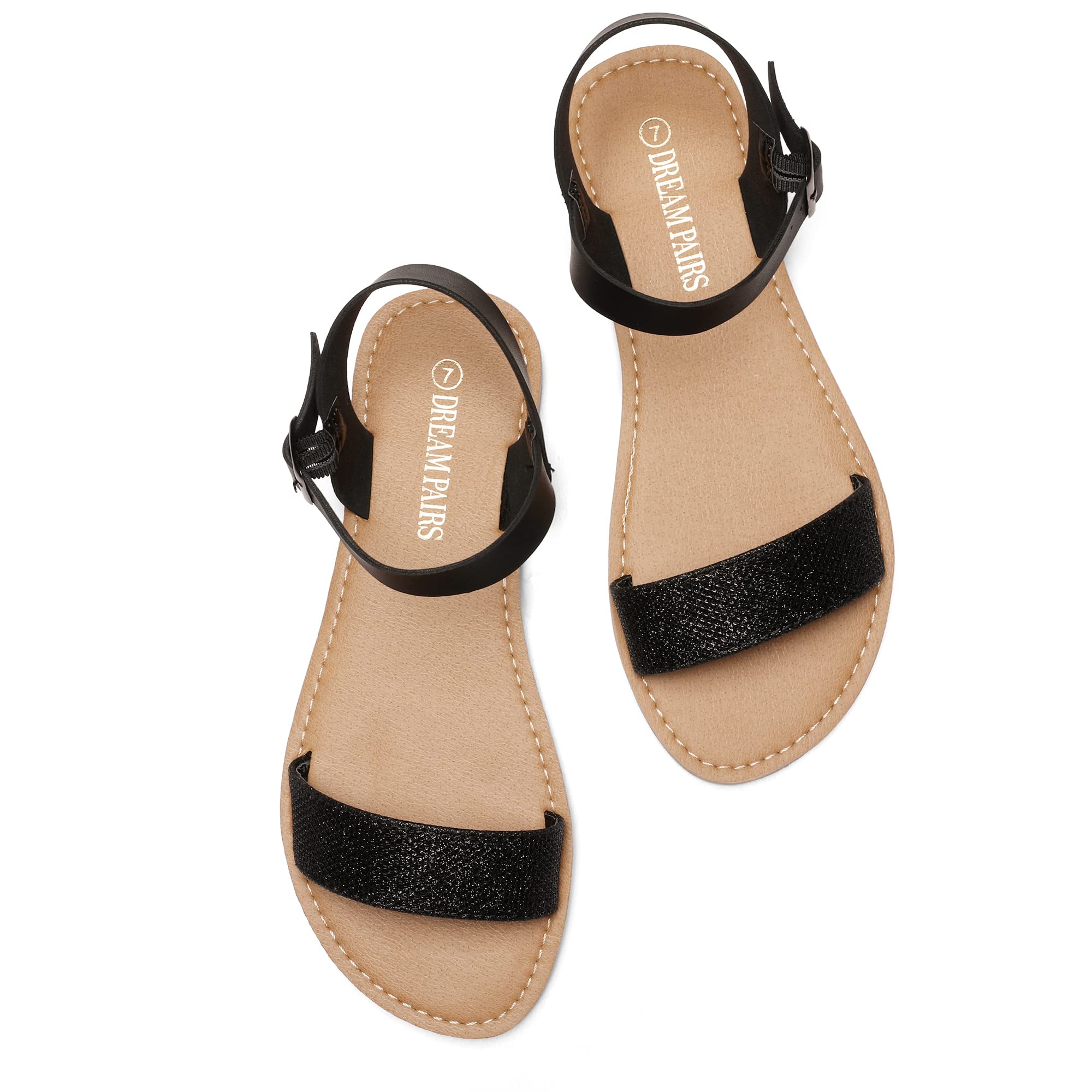 Dream Pairs Hoboo Black Fashion Open Toes Ankle Strap Flexible Flat Sandals 11