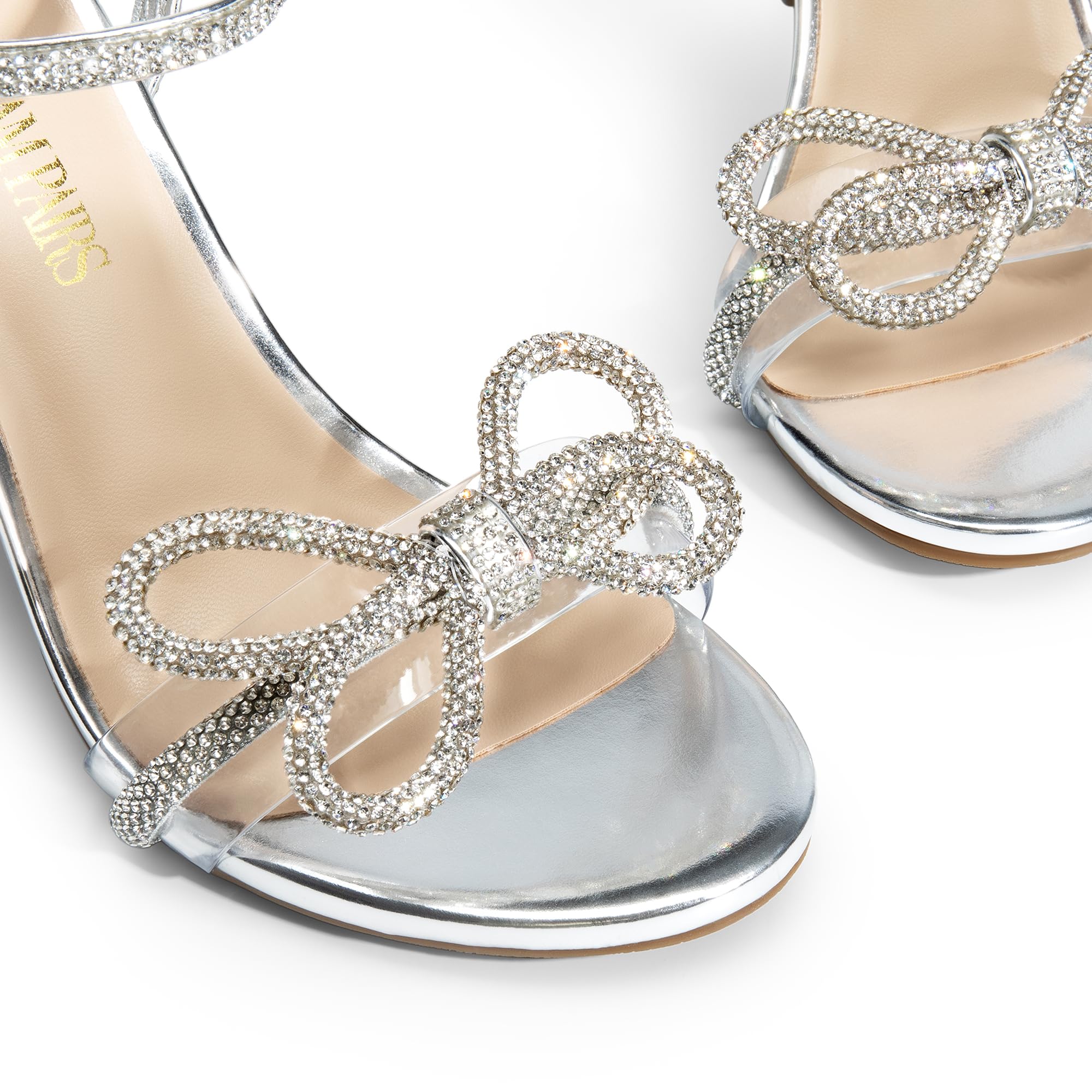 Elevate your style with these fashionable women's heels sandals, which feature a one-strap design adorned with a double bowknot. The bowknot is embellished with sparkling rhinestones for a touch of glamour.