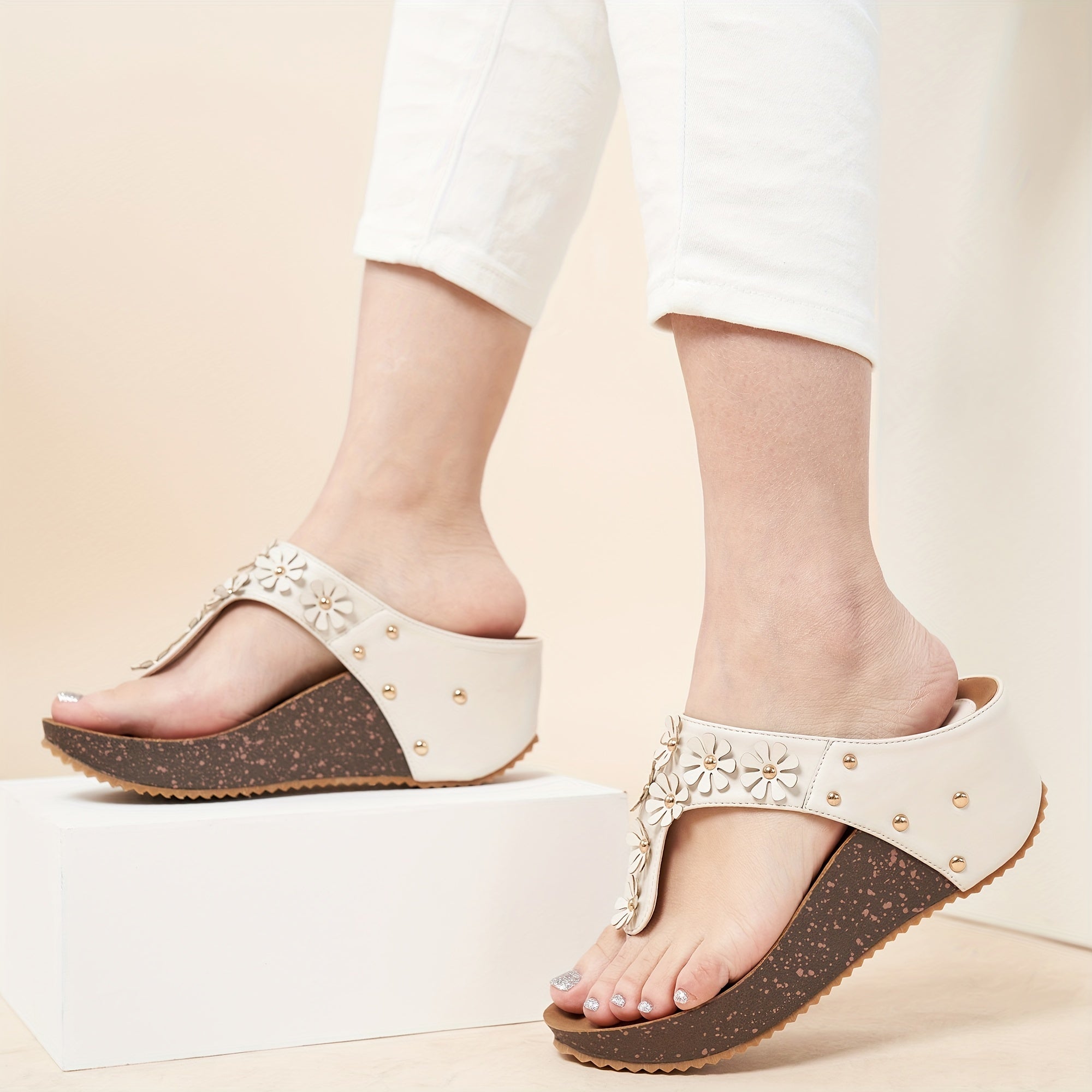 Women's Platform Wedge Thong Sandals - Casual High Heel Cork Flip Flops with Arch Support & Slip-on Ease Flip Flo