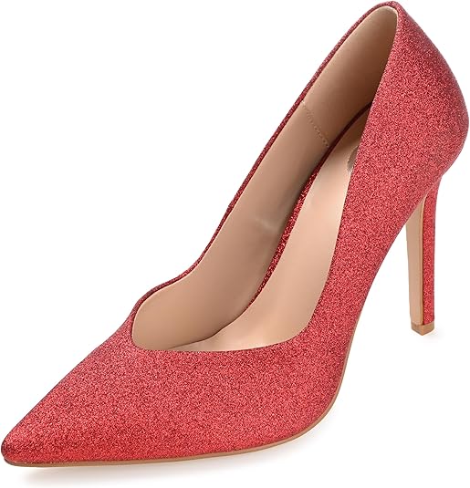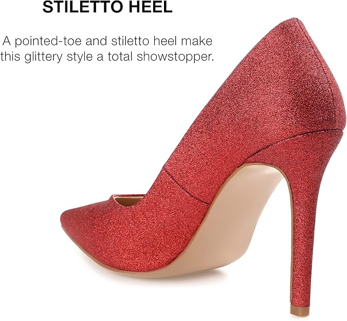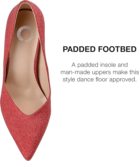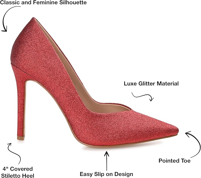 This shimmering stiletto is a total showstopper. The Ninna heels by Journee Collection are dance floor approved thanks to the man-made uppers and padded footbed. A pointed-toe and glitter details throughout boldly finish the design. At Journee Collection our pump styles will let you go from a fun night out with the girls to kicking back and relaxing at the end of the night without any trouble.