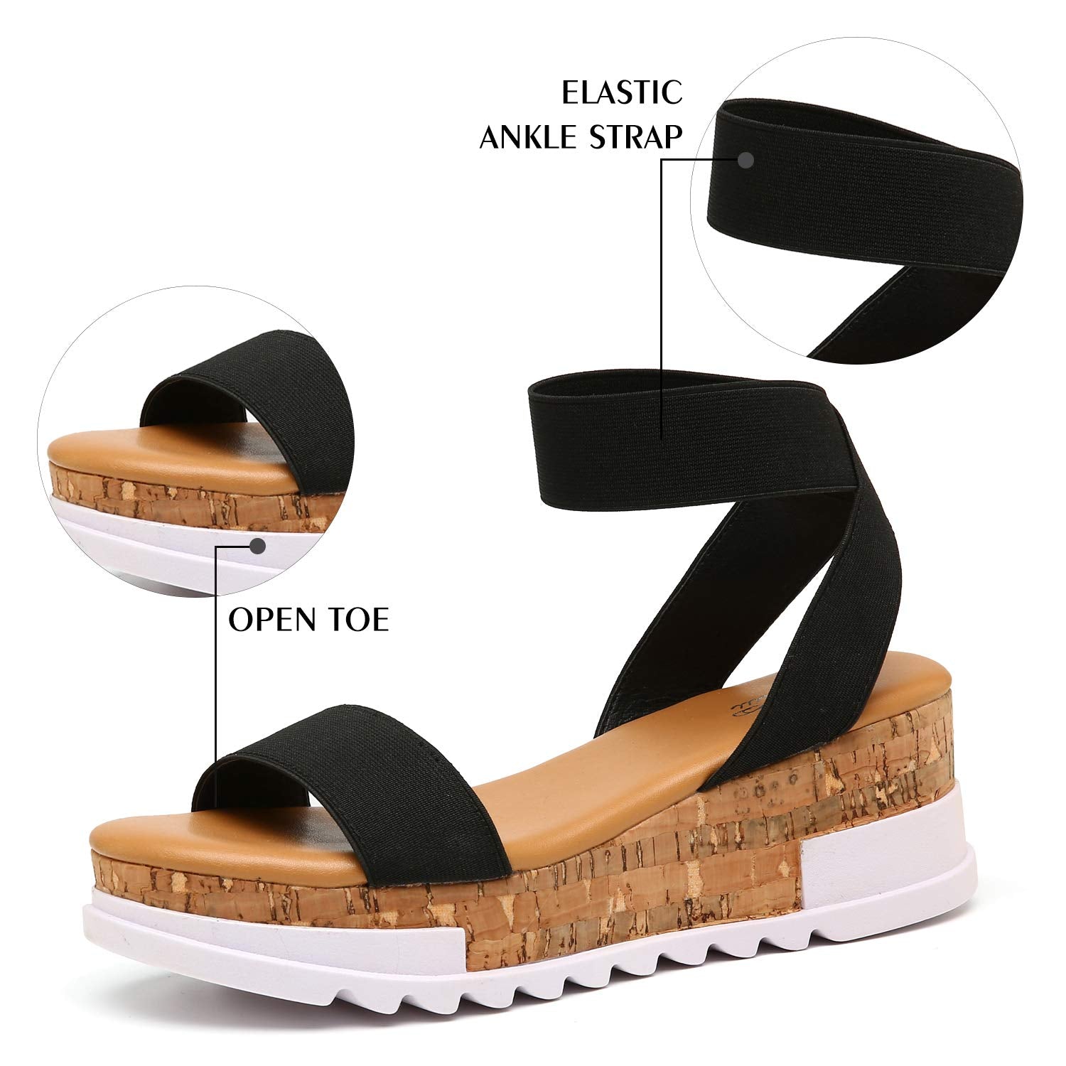 - WEDGE PLATFORM: 1 inches platform and 2.5 inches cork wedge features with great slope which follow the curve of your foot to provide a great walking experience and give you a few height to your figure without any discomfort