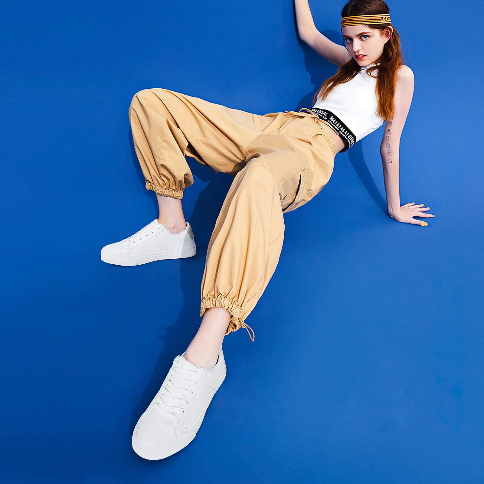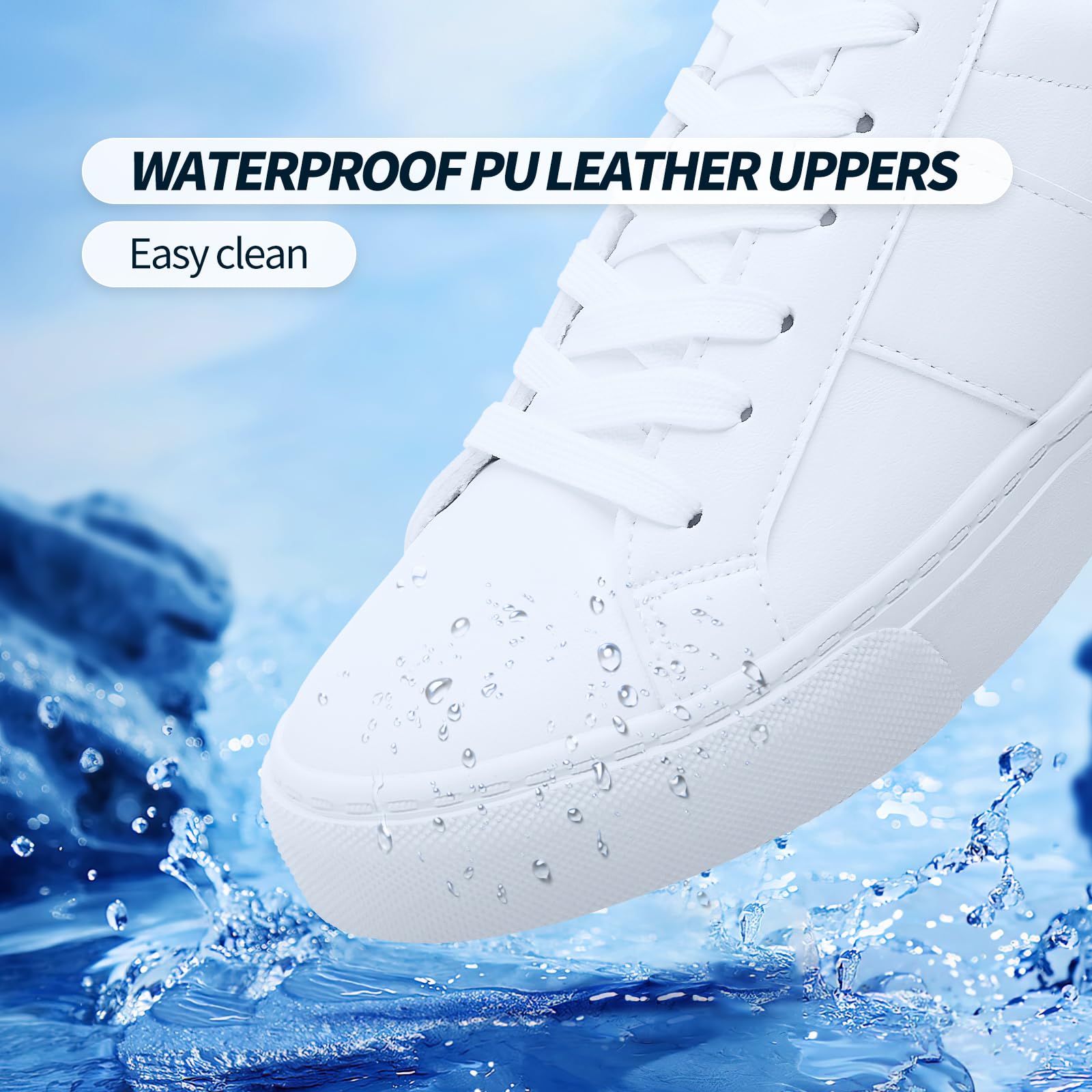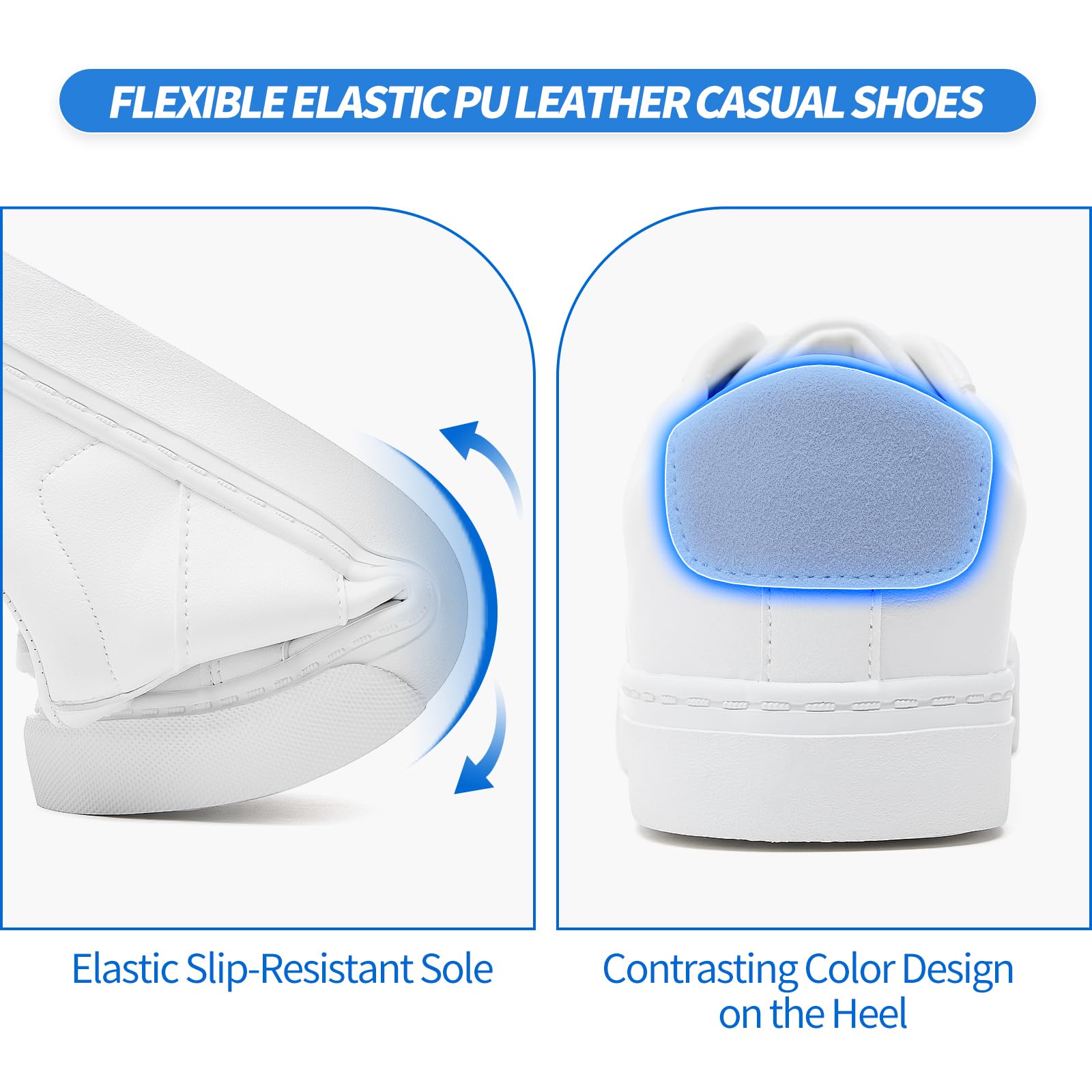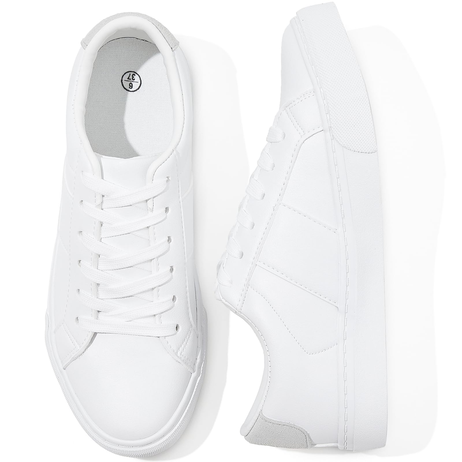 kufeiti White PU Leather Sneakers for Women Low Top Lace Up Tennis Shoes Women's Fashion Casual Shoes Sneakers