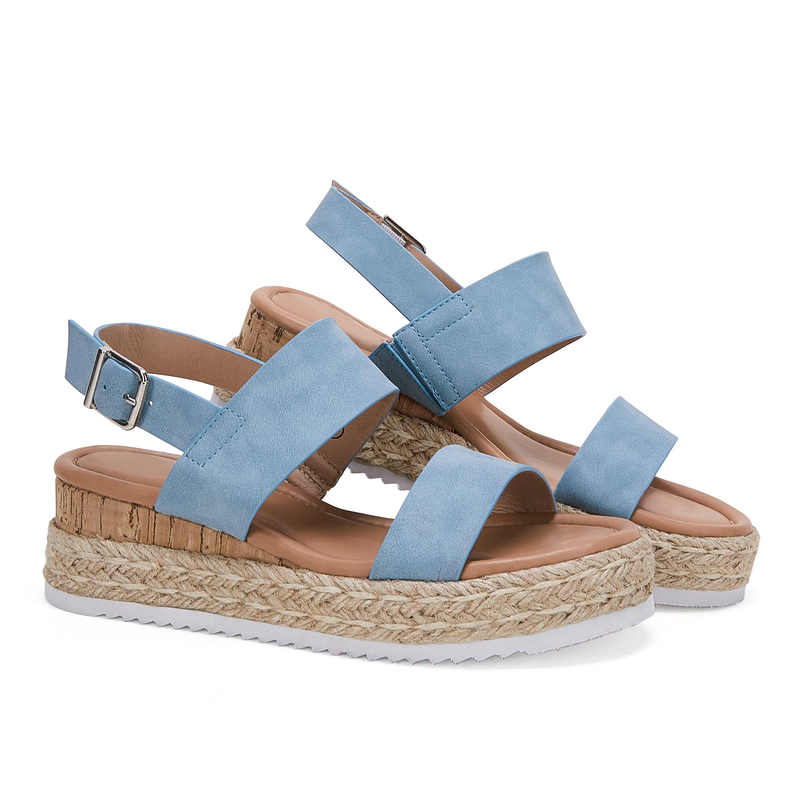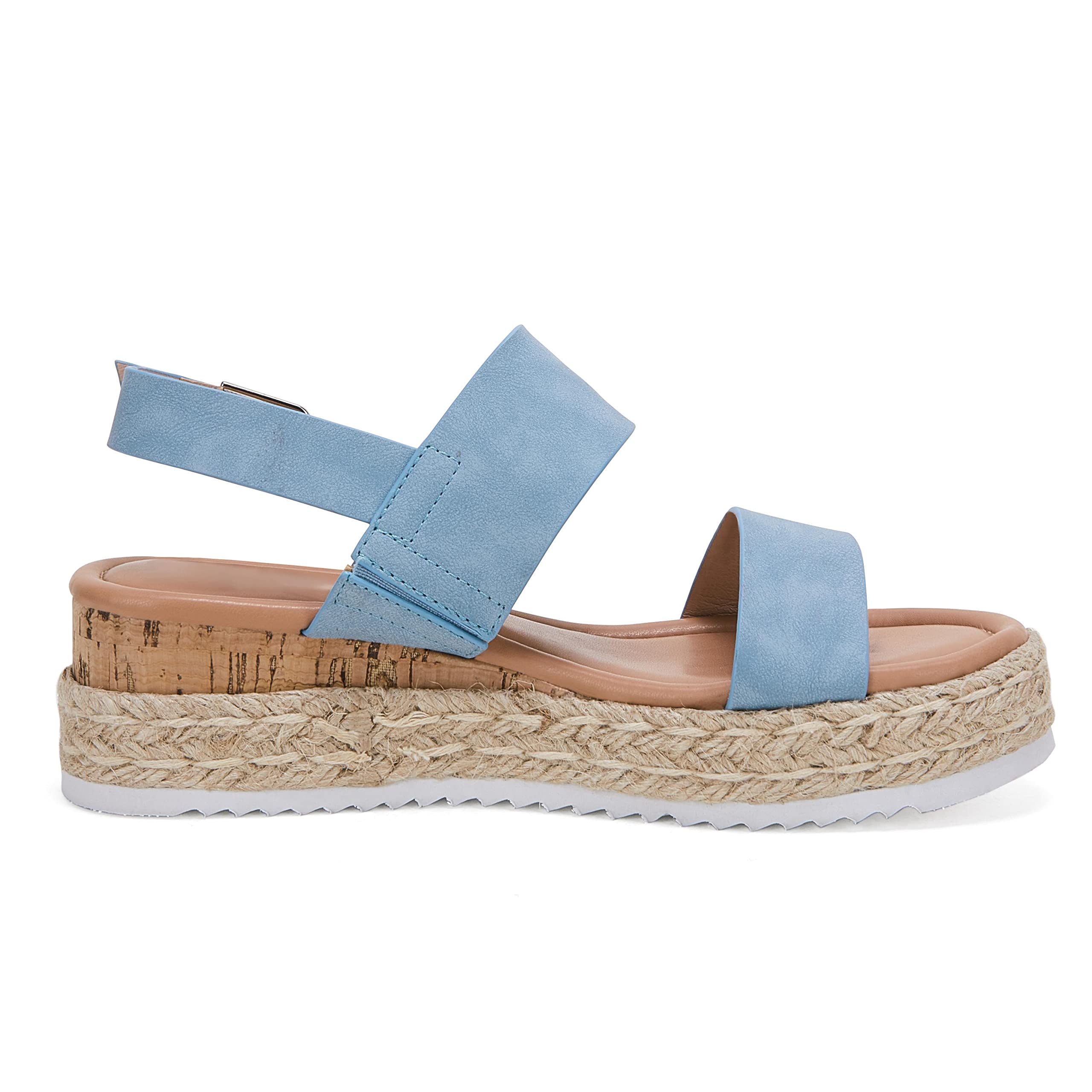 LAICIGO Open Toe Wedge Platform Espadrilles Ankle Strap Buckle Faux Leather Cork Rubber Summer Sandals