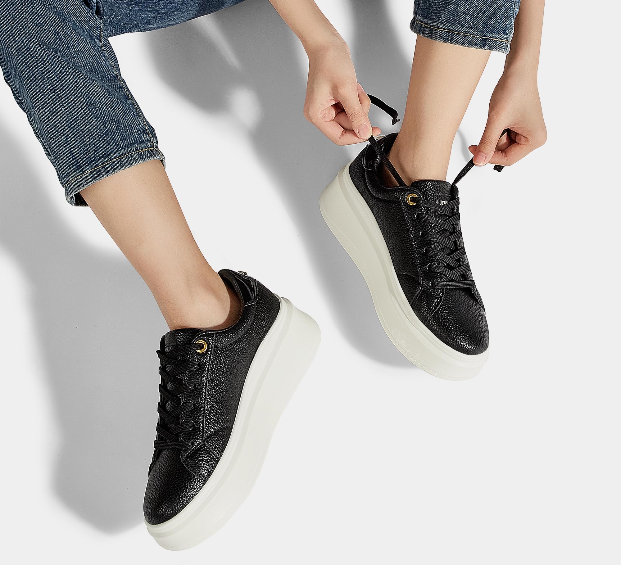 - These platform sneakers boast a heel height of approximately 2.6 inches, offering the elevation of high heels with greater comfort.