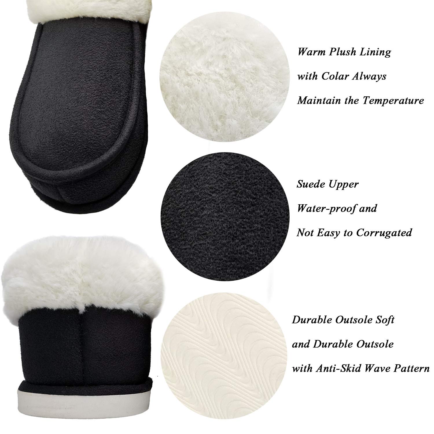 ofoot Womens  Warm Faux Suede Slippers Indoor Shoes Comfortable Fur Lining 6-7
