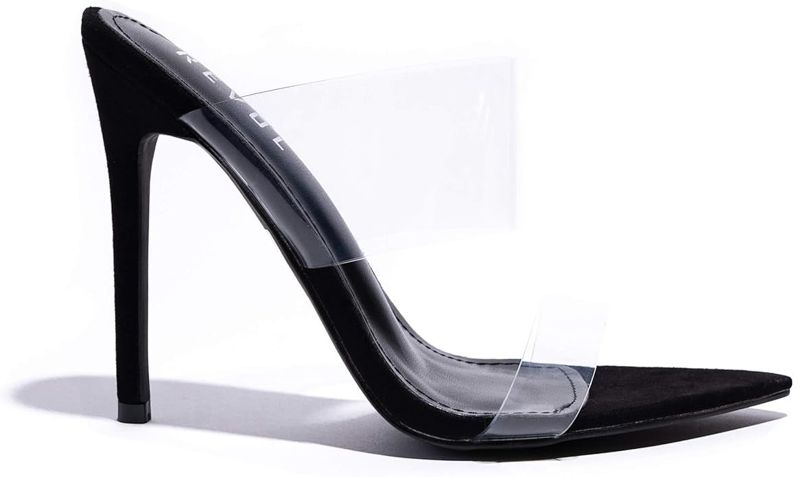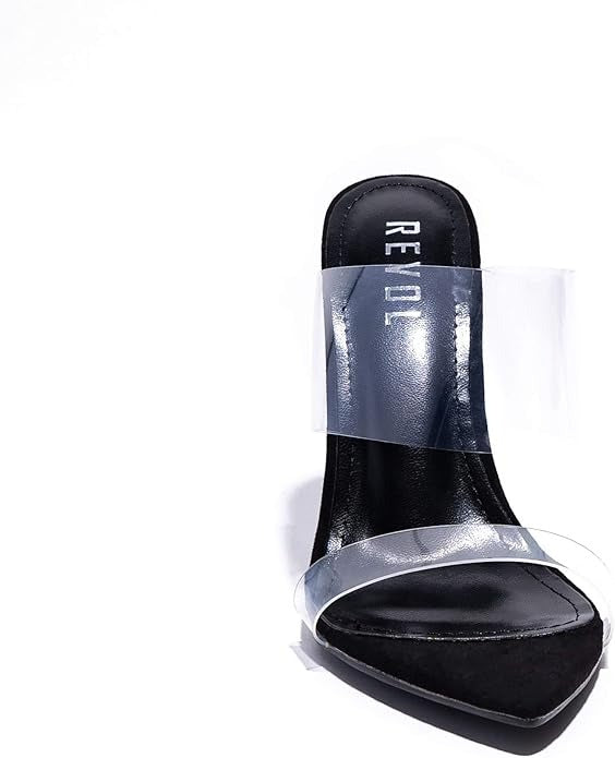 Revol Miniso Black Fashion Slip On Pointed Stiletto Open Toe Heeled Sandals