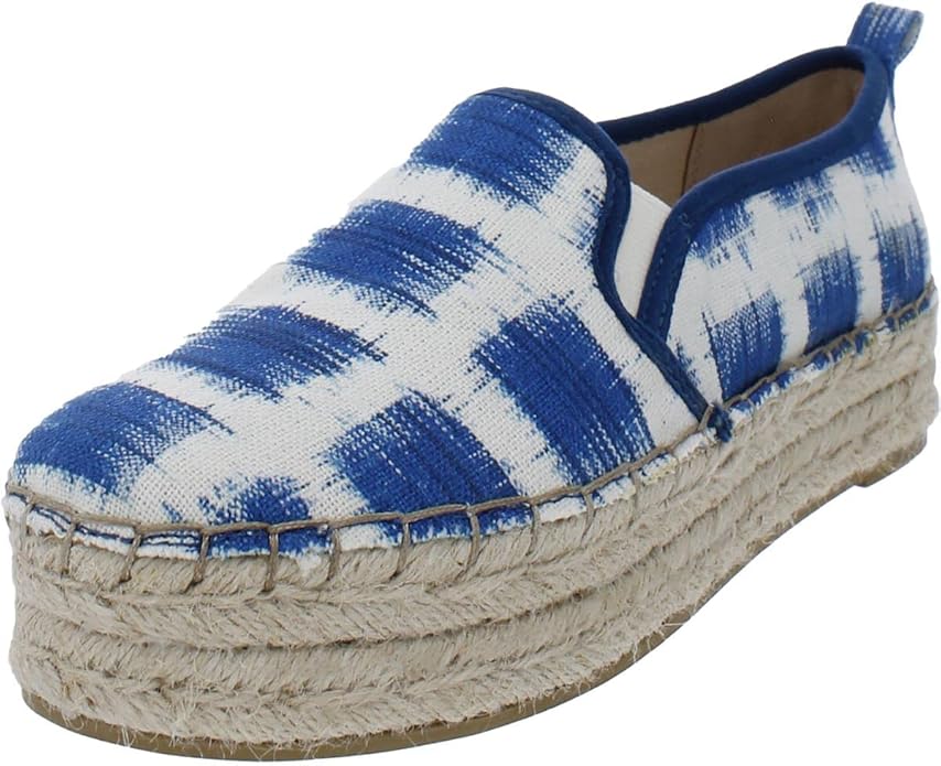 Sam Edelman Carrin Blue/Multi Gingham Print Fashion Slip On Platform Rounded Toe Shoes