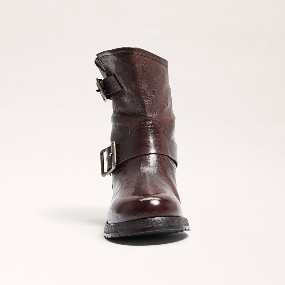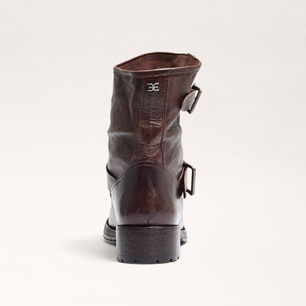 Sam Edelman Lulah Dark Brown Leather Buckle Detailed Rounded Toe Ankle Boots