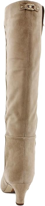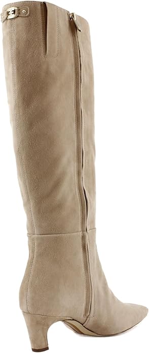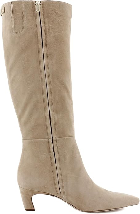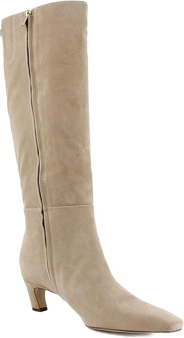 A squared-off toe elegantly finishes this tall boot shaped from fine suede and elevated on a low covered heel.
