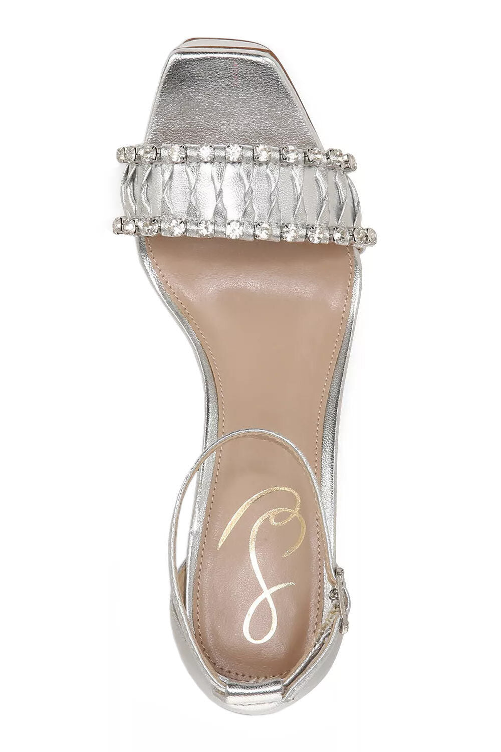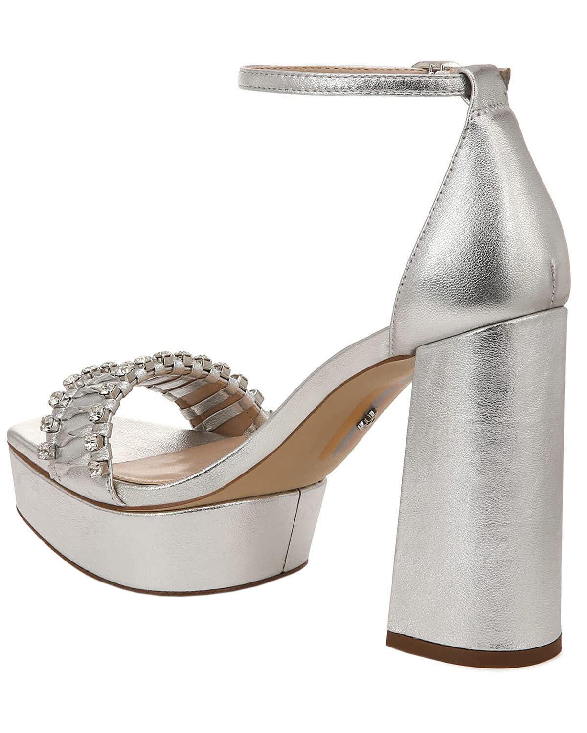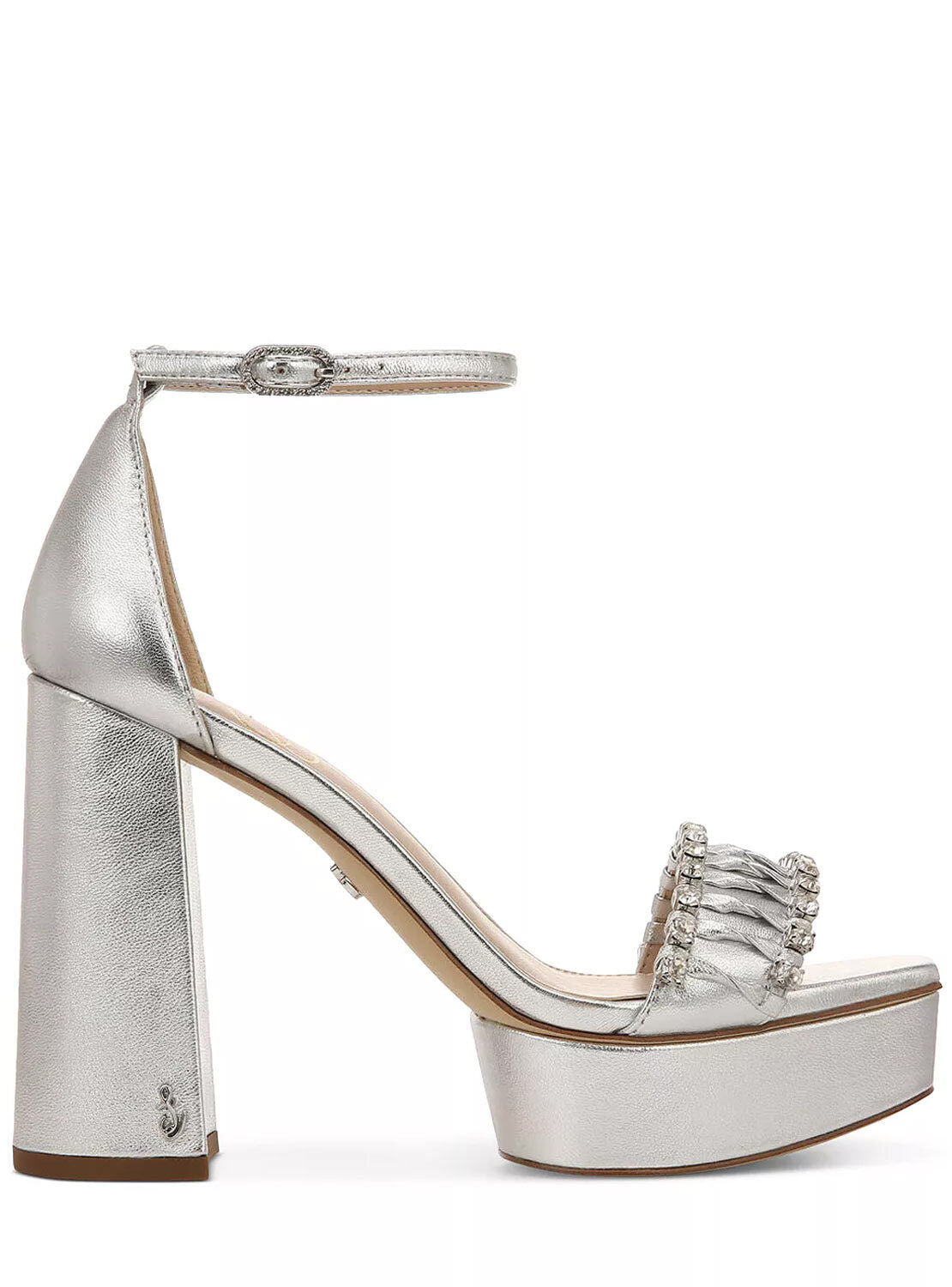 Sam Edelman Ninette Silver Embellished Strap Buckle Ankle Block Heel Sandals