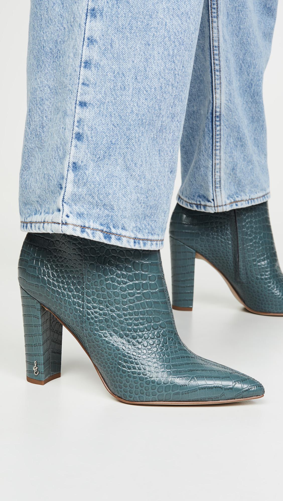 Delight in your look with the exotic Raelle 2 booties featuring a croco-embossed leather upper and pointed-toe silhouette.