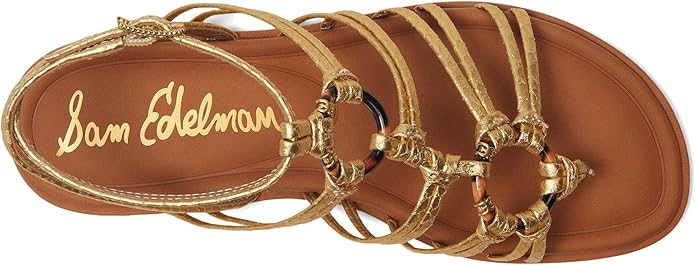 Sam Edelman Raye Gold Open Toe Strappy Gladiator Ankle Strap Flat Sandals