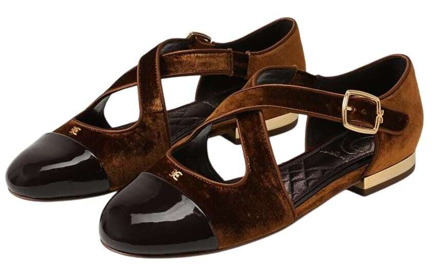 - Materials: velvet, patent and leather