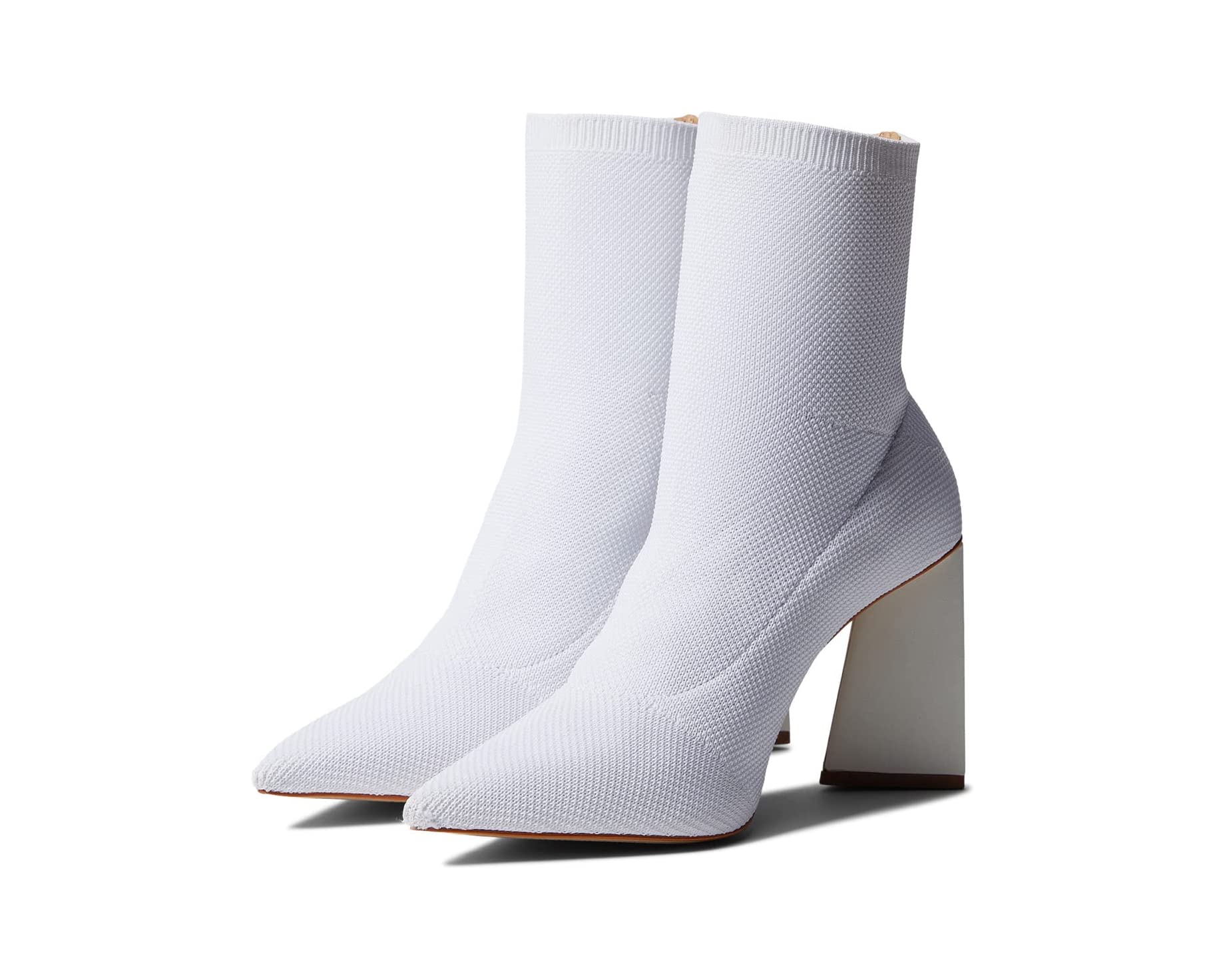 The Marila is a sleek, form-fitting boot crafted from a knitted material with a pointed-toe and chunky heel.