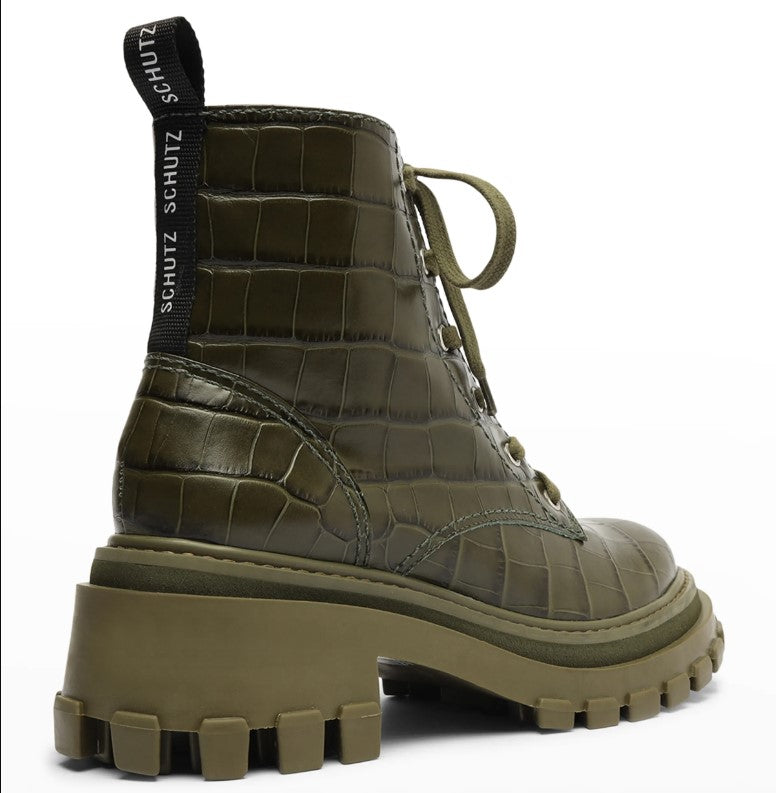 - Schutz boots in shiny croc-embossed leather
