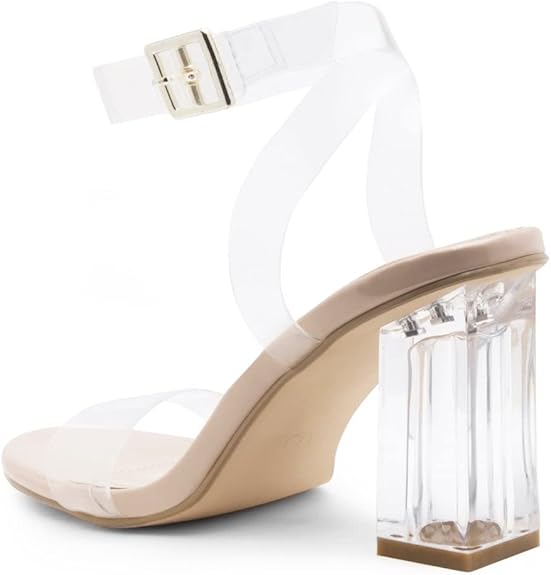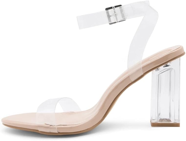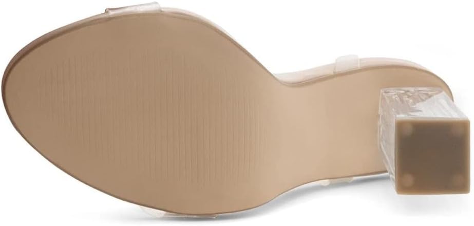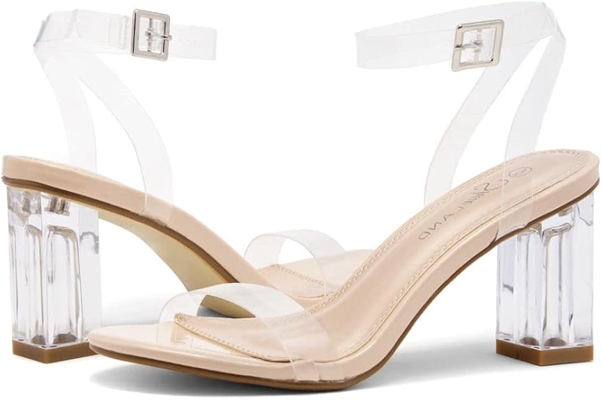 Shoe Land CLAARY Nude Fashion Ankle Strap Open Toe High Block Heeled Sandals