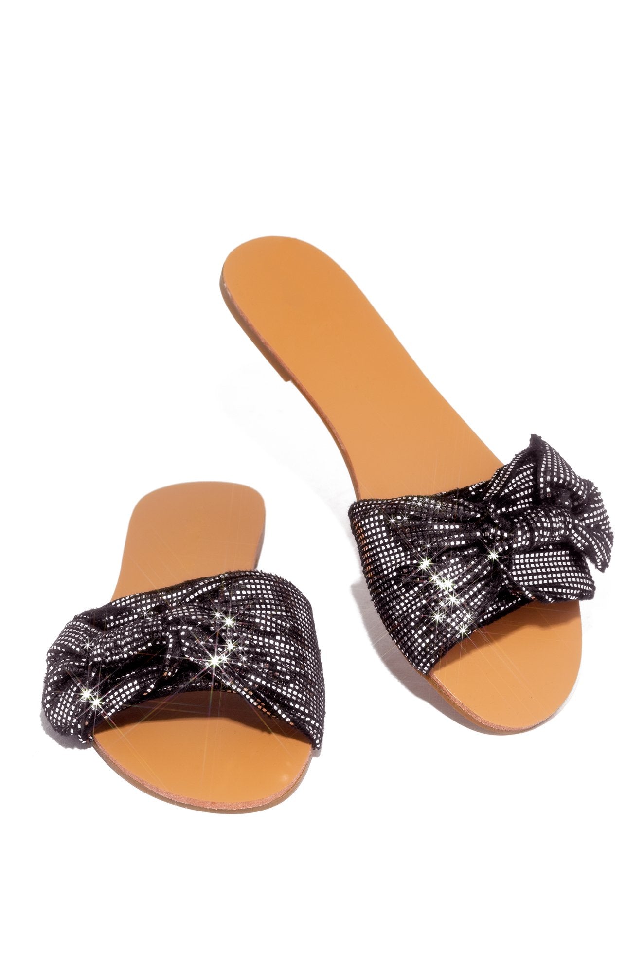 Shoe Republic Kentt Feeling Hot Black Shimmer Flat open Toe Slide Mule Sandals