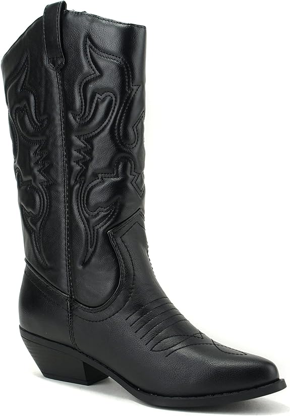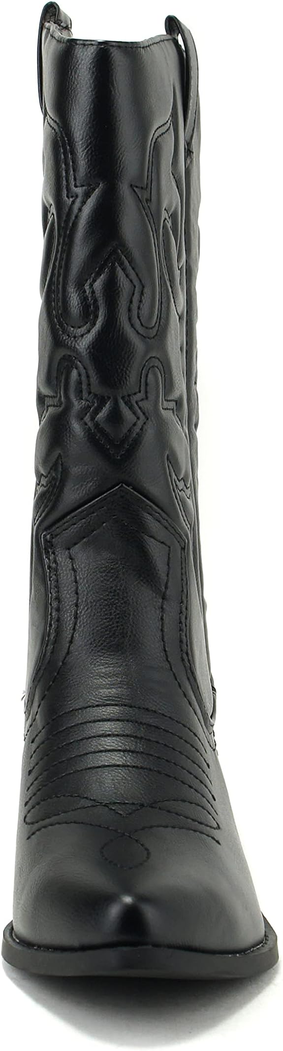 Soda Reno Black Western Cowboy Pointed Toe Knee High Pull On Tabs Western Boots