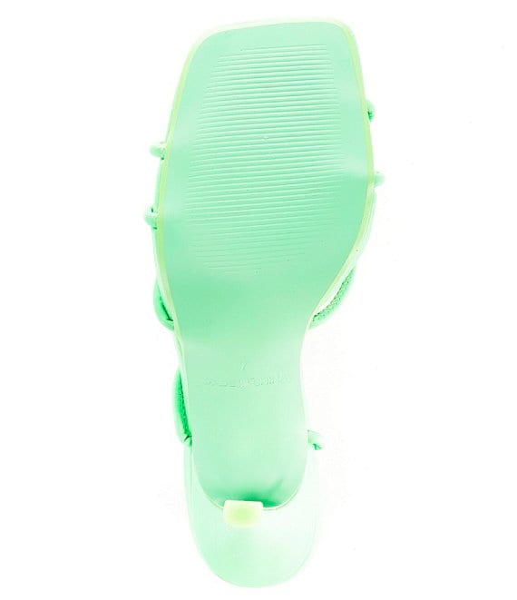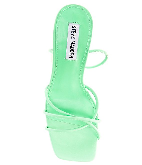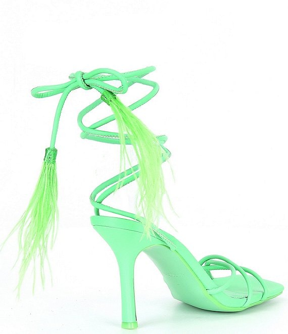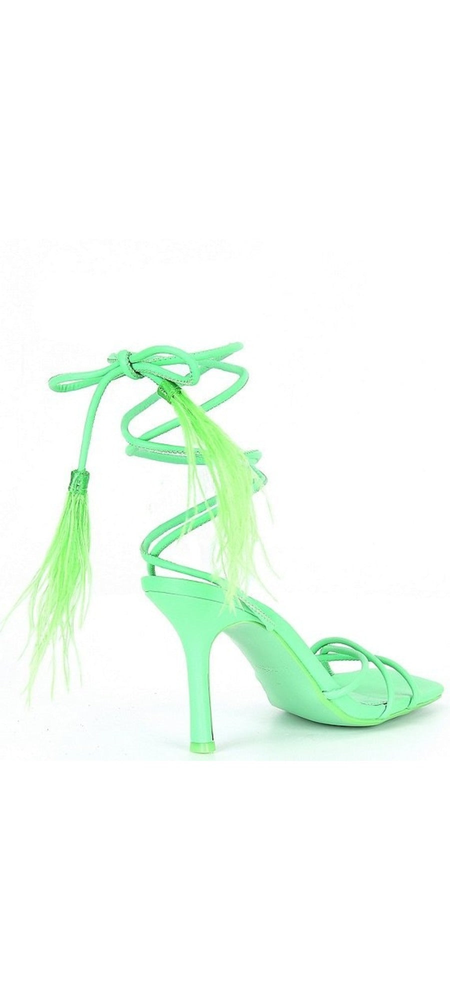 Steve Madden Bryden Neon Green Lace Up Open Toe Feather Detailed Heeled Sandals
