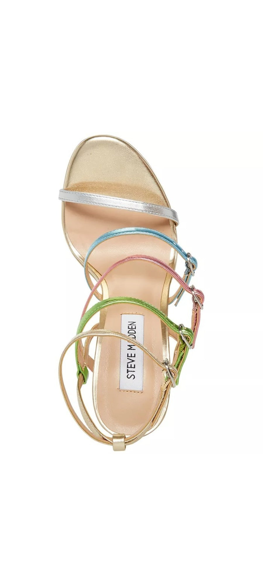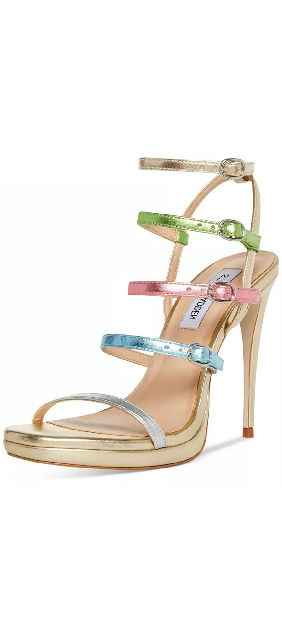 Colorful buckled straps set off sleek stiletto heels in the gorgeous Jubilant sandals.