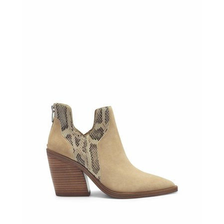 Vince Camuto Gannilla Tortilla Suede and Snake Print Leather Western Booties