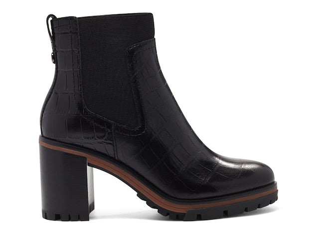 Vince Camuto Denniel Black Pull On Rounded Close Toe Block Heeled Ankle Boots