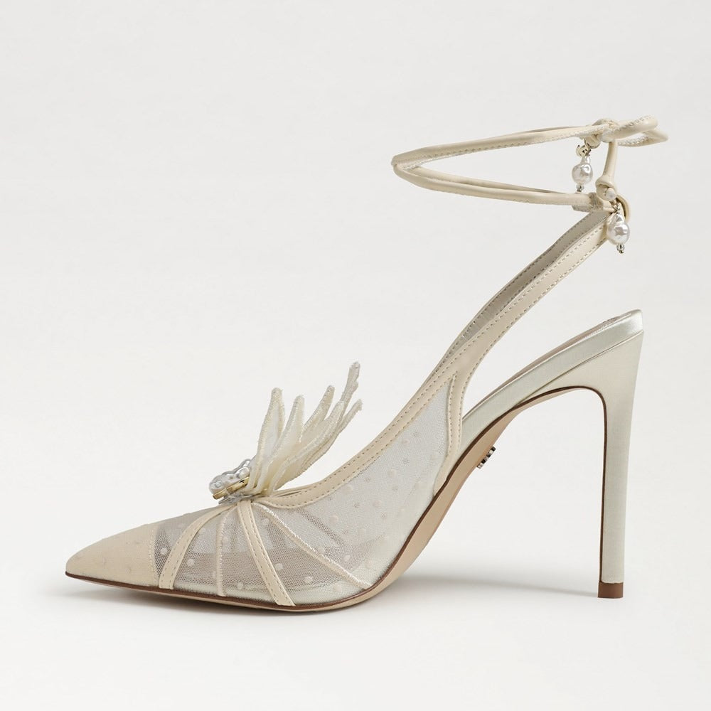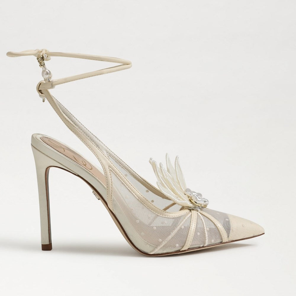 These heavenly Aura heels boast delicate ankle wraps punctuated with a pearly charm, cap toes, and a vibrant floral burst. The Aura can do no wrong, so whatever you pair them with just let it shine.