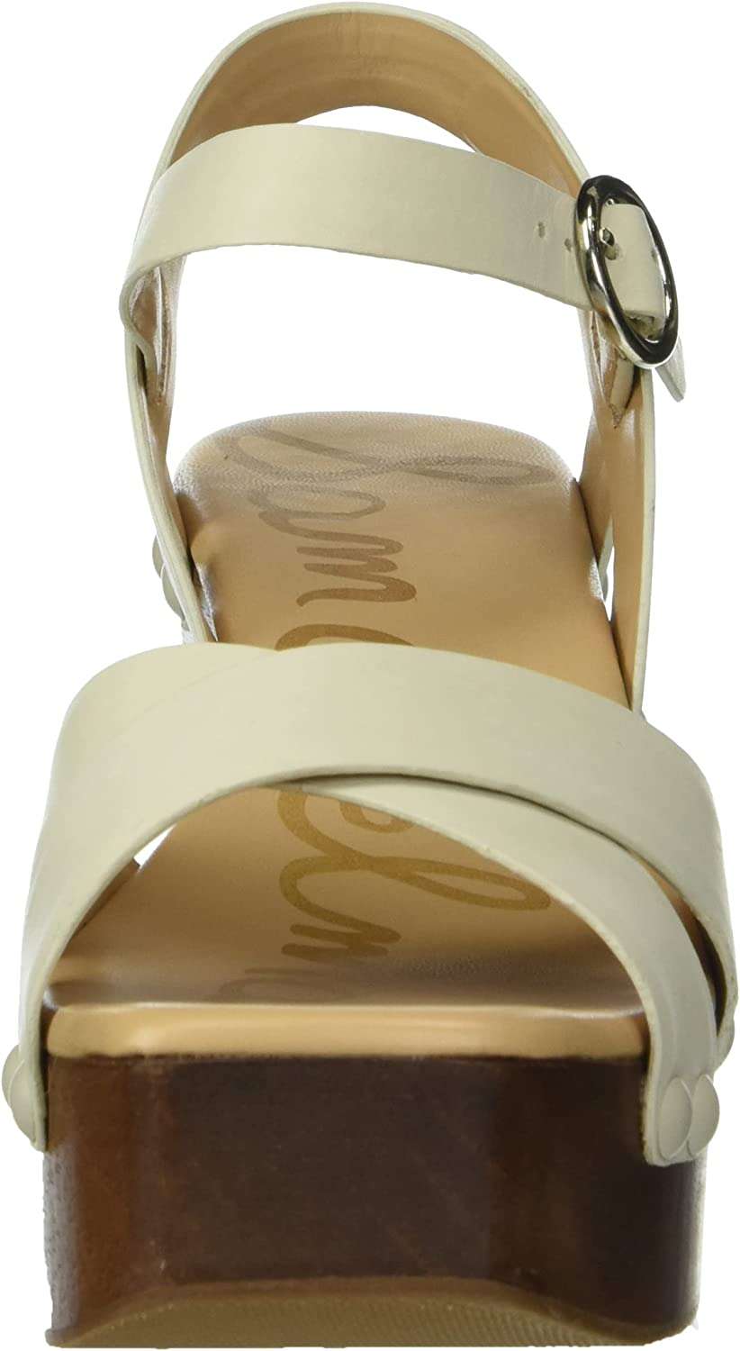 Sam Edelman Josefine Modern Ivory Leather Block Heel Ankle Strap Heeled Sandals