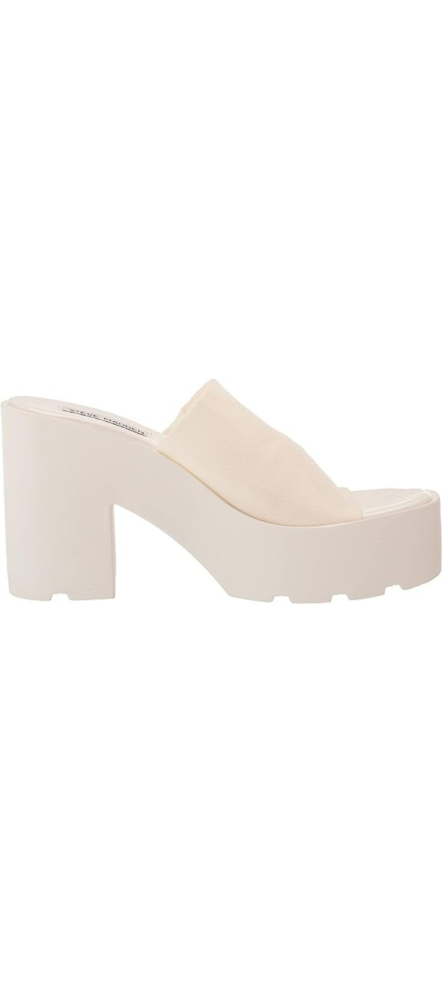 Steve Madden Sami White Slip On Block Heel Rounded Open Toe Heeled Sandals