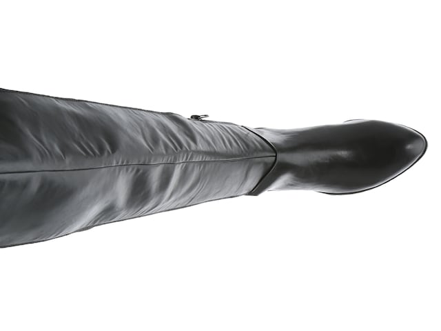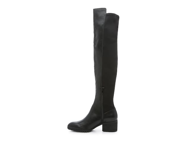 A block heel adds a hint of utilitarian style to the streamlined silhouette of this outfit-making over-the-knee boot.