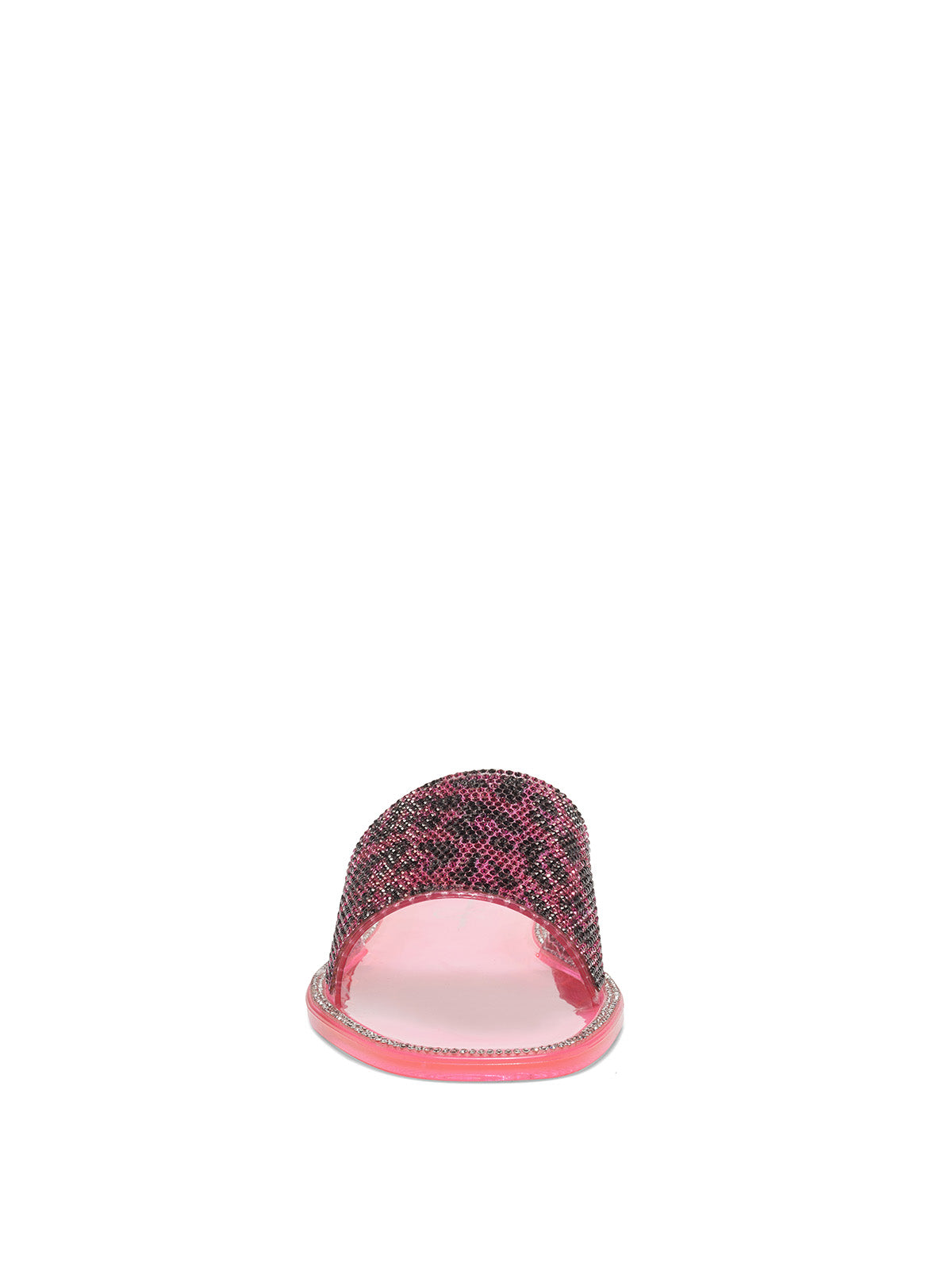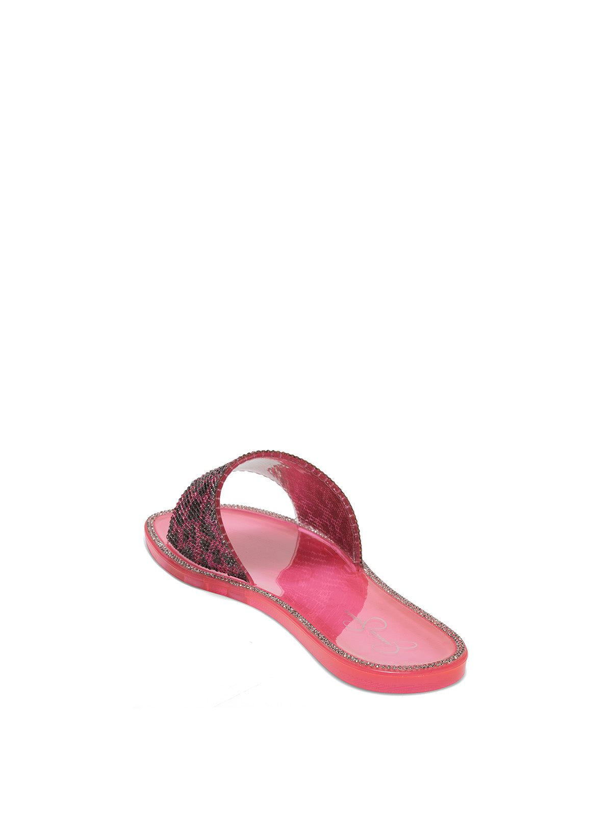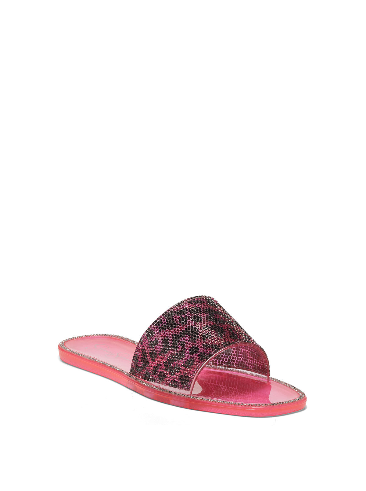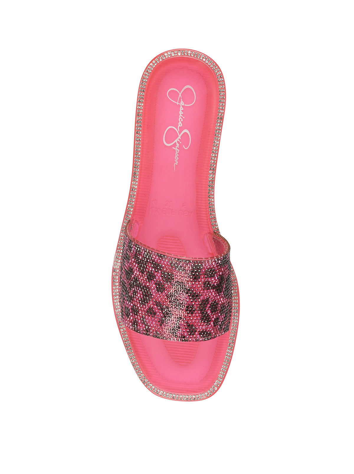 Jessica Simpson Kassime Pink Leopard Sparkle Mesh Embellished Jelly Slip-On Sandal