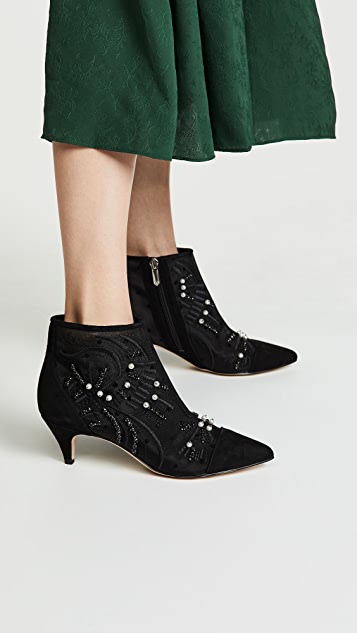 Kitten heel bootie with pearl and stud embellishment