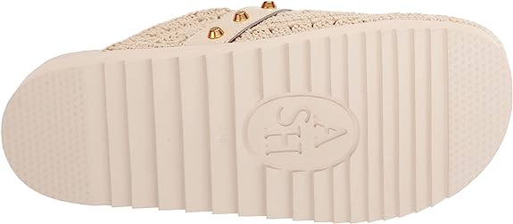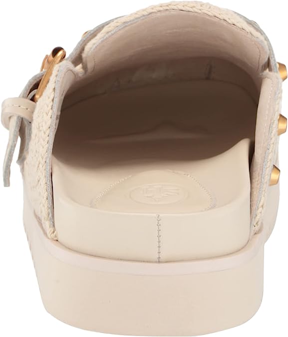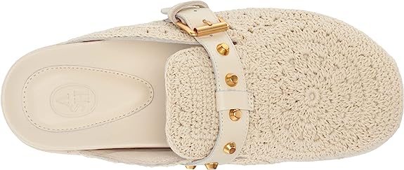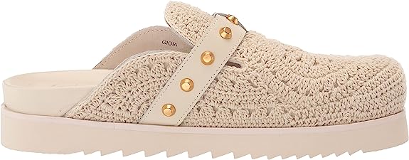 Ash Gioia Talc Crochet Gold Studs Buckle Strap Slip On Round Toe Clogs Slippers
