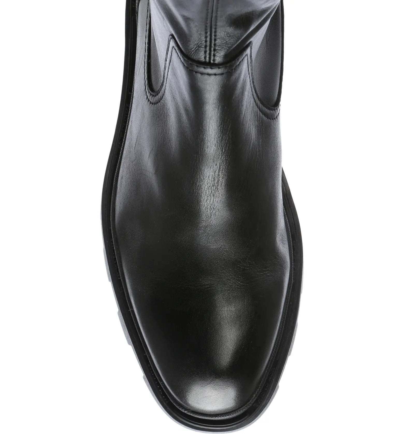 The AW20 Manhattan black boots from the Ash collection are thigh high boots, crafted in soft faux leather. This high rise style gives an update of the classic and well loved Chelsea boot. The cleated, chunky sole completes this style, adding that extra edge. Team these with an all black monochrome look this forthcoming winter.