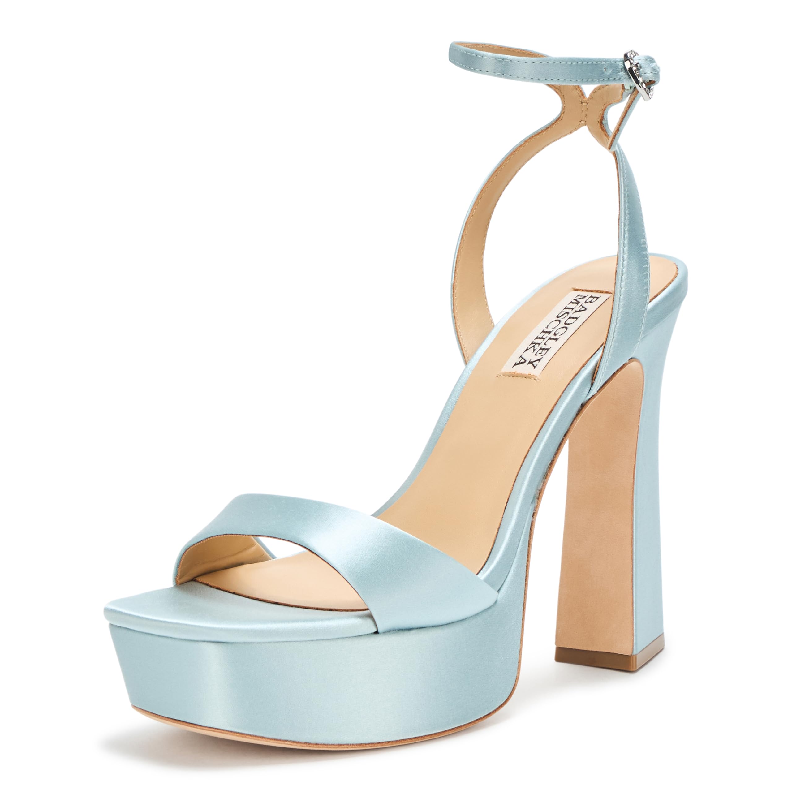 Badgley Mischka CAIA Mist Blue Fashion Buckle Open Toe Platform Heeled Sandals 6
