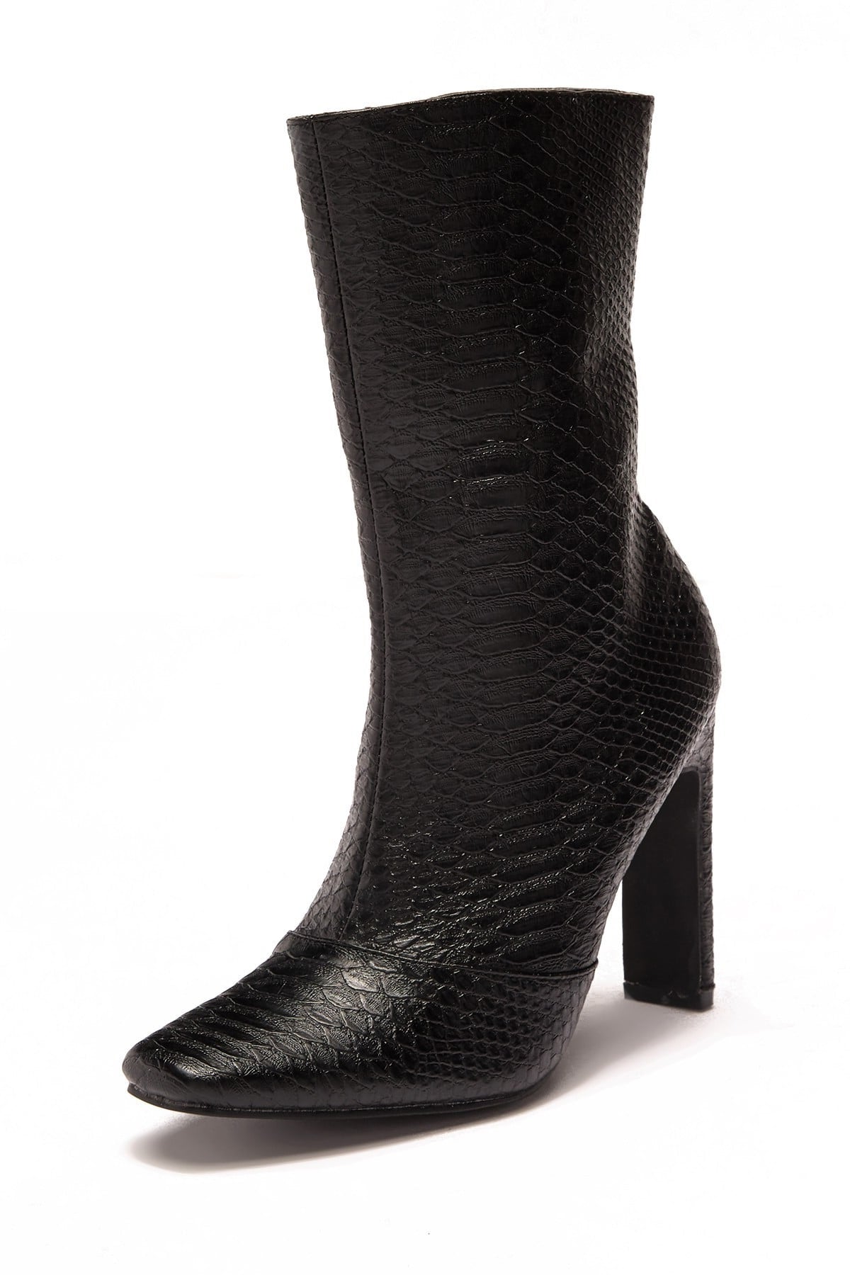 Boomslang Womens Boot Black Snake Round Toe Rectangle Heeled Squared Toe Booties
