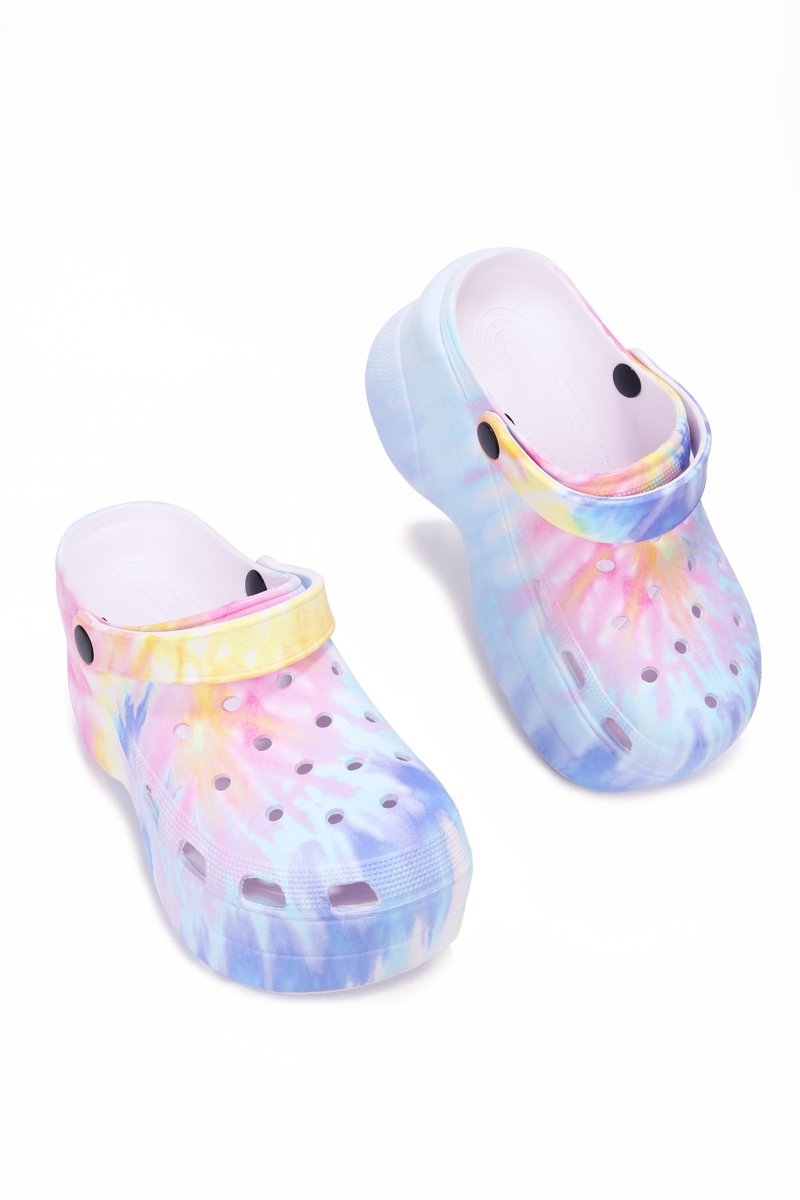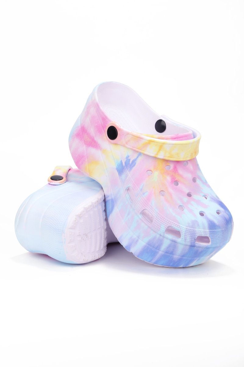CAPE ROBBIN GARDENER CHUNKY PLATFORM ANKLE STRAP CUT OUT CLOG SANDAL-TIE DYE
