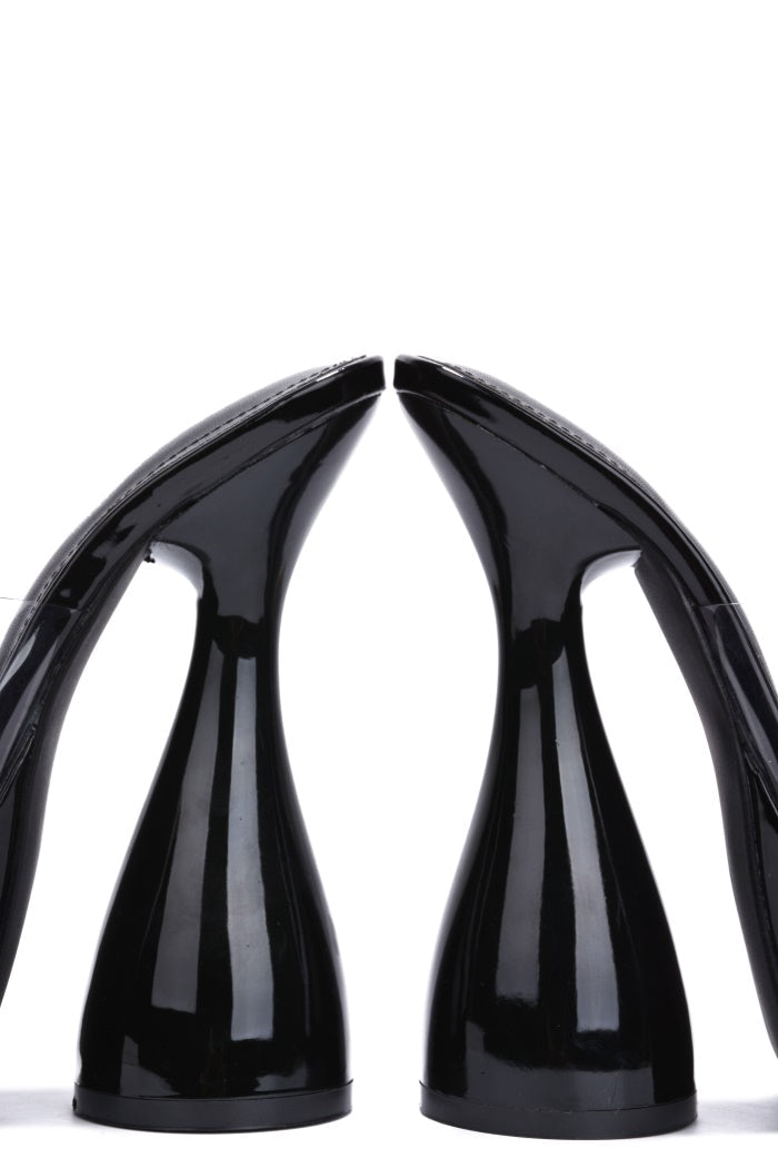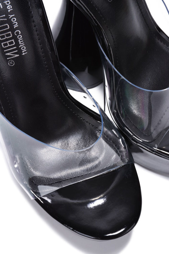 Cape Robbin INJI Black Transparent Clear Open Toe Block Super High Heel Chunky